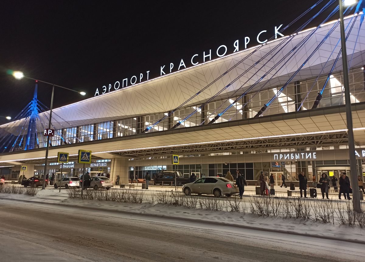 пройти 0,4 км, далее маршрутное такси № 202 до ост. «Аэропорт Красноярск», пройти 0,5 км.