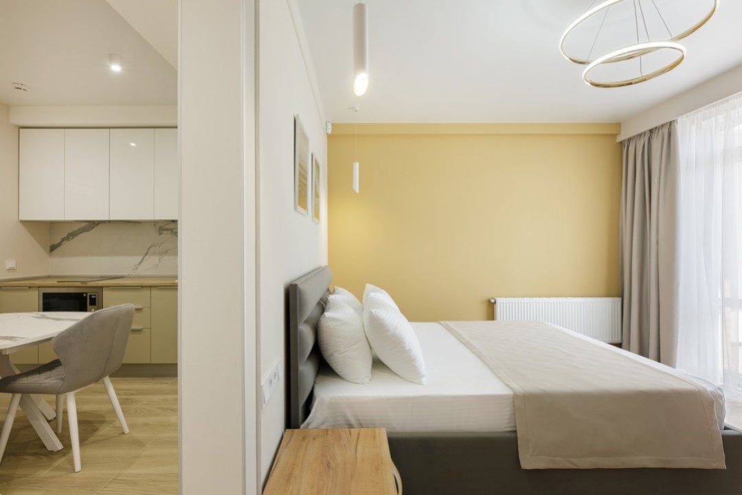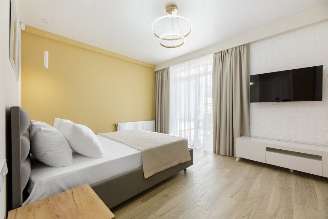 Гостям предлагаются светлые апартаменты, внутри которых есть: удобные кровати со свежим постельным бельем, ЖК-телевизор, тумбы, а также ванная комната, в которой установлен душ. На территории гостиницы работает сеть Wi-Fi.