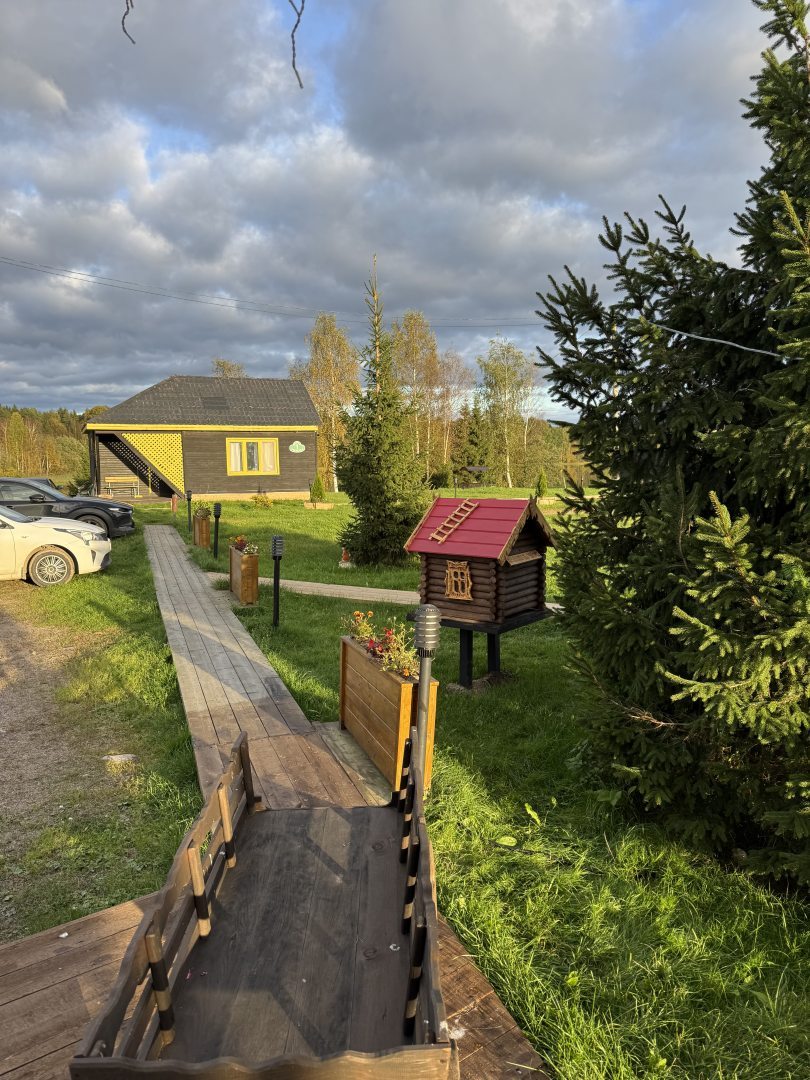 Шикарное место. Искала открытое пространство, идеально. Красивый вид из окна, как мало сказано в этой стандартной фразе, красивый вид из всех окон, даже в санитарной комнате вид из окна впечатляет. Домик маленький, чистенький, новенький. На небольшой площади все как надо, очень функционально и уютно. А вокруг потрясающая тишина, на базе аншлаг, все домики арендованы , а людей нет. Да кто-то жарит шашлык, кто- то ловит на пирсе рыбу, любители русской бани пробежали к воде, серьезные рыбаки отчалили на лодках, проплыла парочка на сапбордах, но все это где-то, никто никому не мешает. Сергею спасибо за чуткое отношение к гостям.