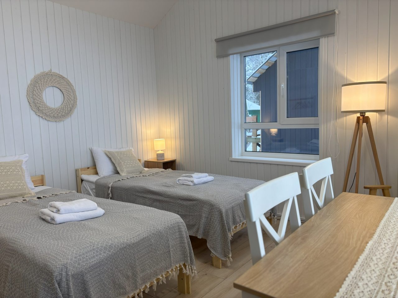 К размещению подготовлены уютные дома, вместимостью от одного до шести гостей. Они оформлены в современном стиле интерьера с индивидуальными деталями. В оснащение входит качественная мебель и современная техника.