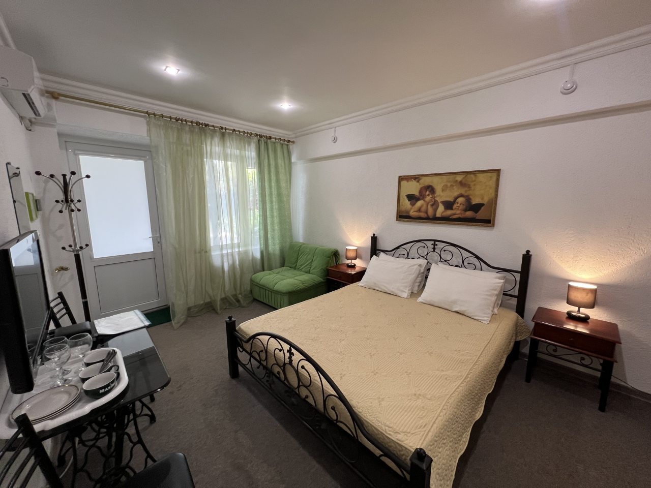 Чистота в номере, круглосуточно горячая и холодная вода, от жары спасает кондиционер. Персонал вежливый и внимательный. Во дворе много зелени , цветов.