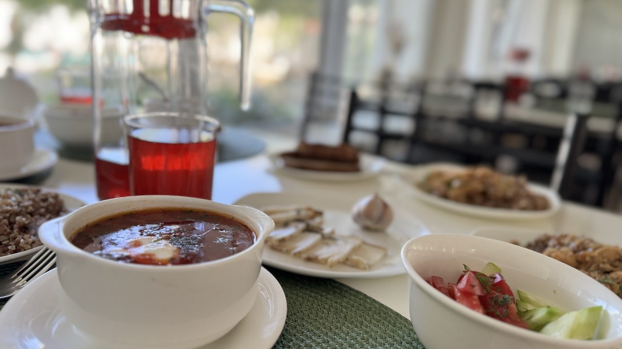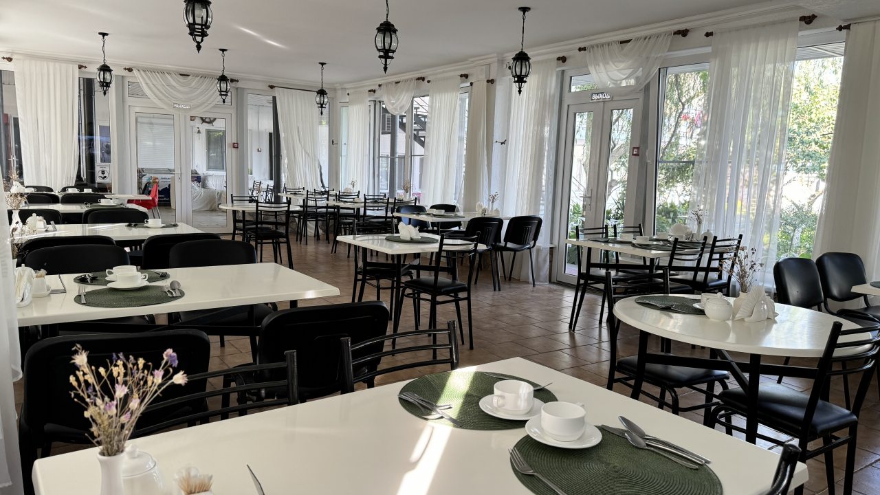 На первом этаже дома отдыха находится кафе, в котором проходит трехразовое питание для постояльцев. Меню заведения состоит из блюд русской, европейской, украинской и восточной кухни. Работают официанты, которые помогут определиться с заказом.