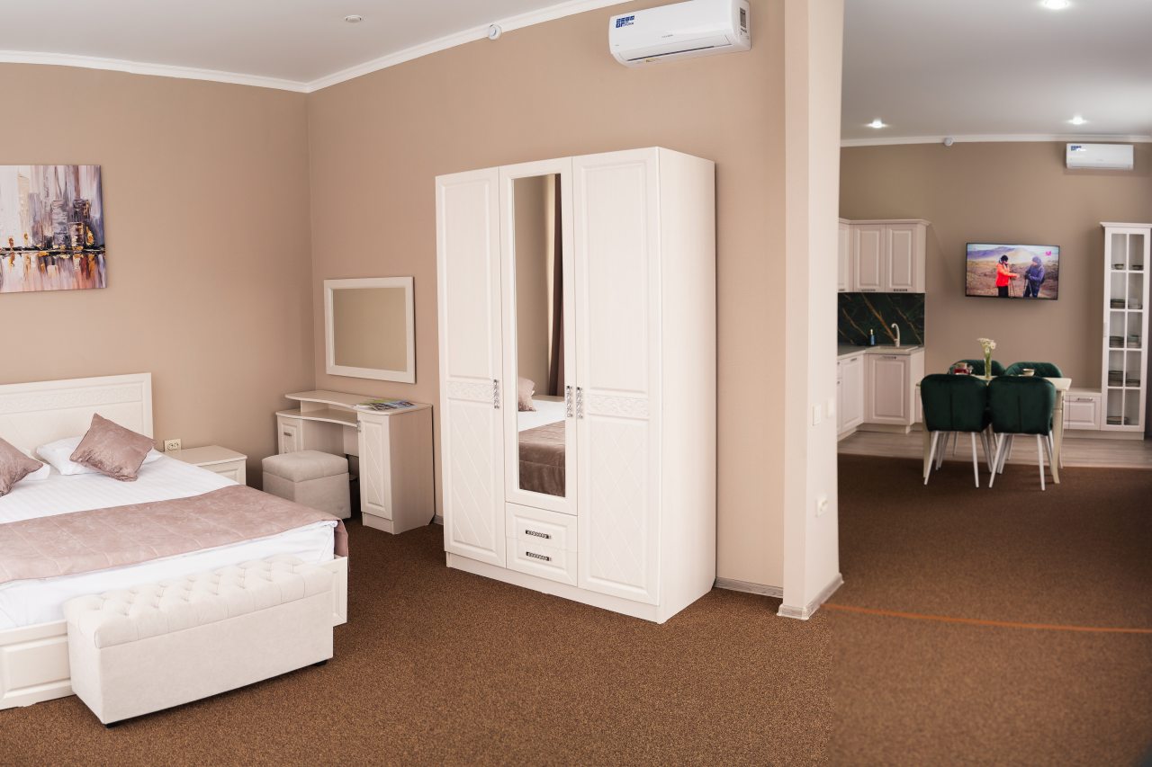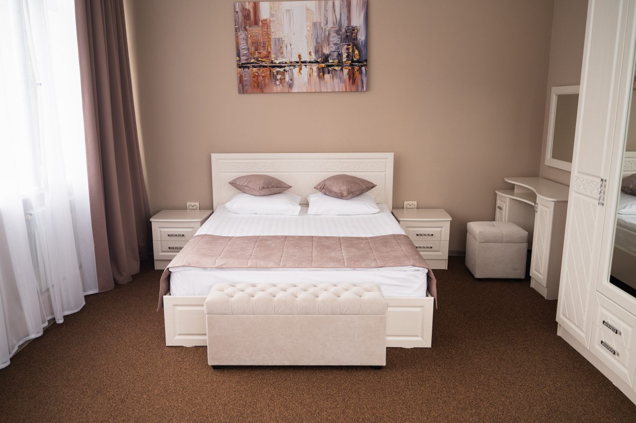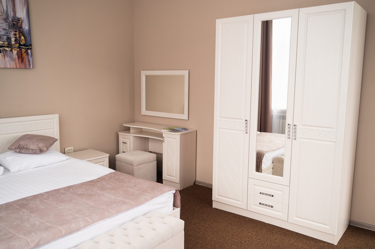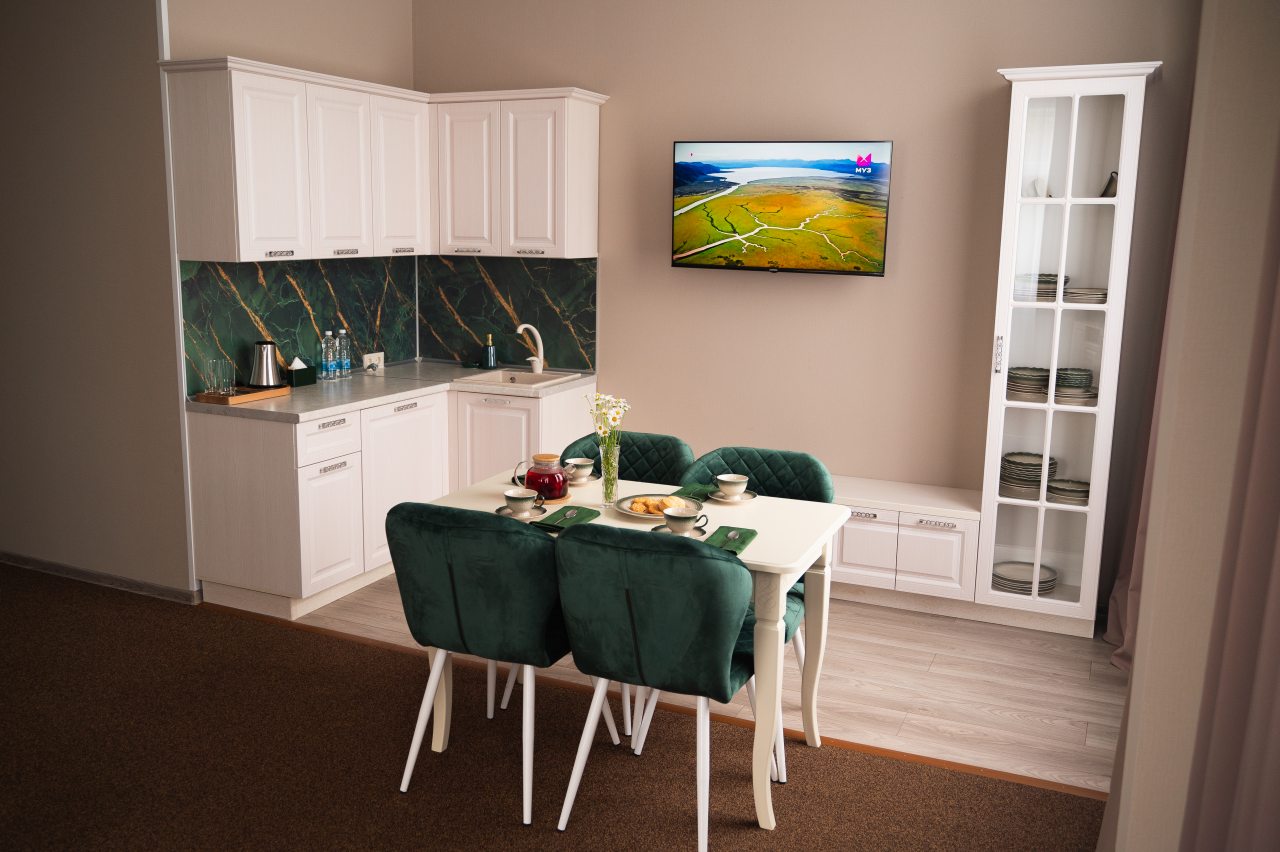 Замечательная гостиница! Сама гостиница с удобной локацией, рядом есть магазины. Очень чисто, уютно и красиво, хороший сервис. Отличные, разнообразные и вкусные завтраки. В номере есть все необходимое. Удобный матрас и подушки, белье чистое, полотенца в необходимом кол-ве, ребенок испачкал полотенце поменяли по просьбе. Обслуживание номера хорошее, предложили уборку номера на следующее утро после заселения. Две большие двух спальные кровати, еще одна 1,5, на семью из 4х человек (с ребенком) в полне, приятно удивлены. Телевизор, VI-FI, холодильник, обогреватель, кондиционер, а также другие предметы домашнего обихода первой необходимости в достаточном кол-ве. В номере было тепло ночью, днем прохладно, даже при + 28, обошлись окном. Пользовались услугами прачечной, быстро, не дорого, рекомендуем. Хотим отметить работников ресепшена, 19.04.25 г. вечер, 19.04.2025 ночь, 21.04.2025 день хорошее отношение, помощь по первому обращению, вежливые, отзывчивые, компетентные по всем вопросам. Обязательно вернёмся, буду рекомендовать своим близким и знакомым!