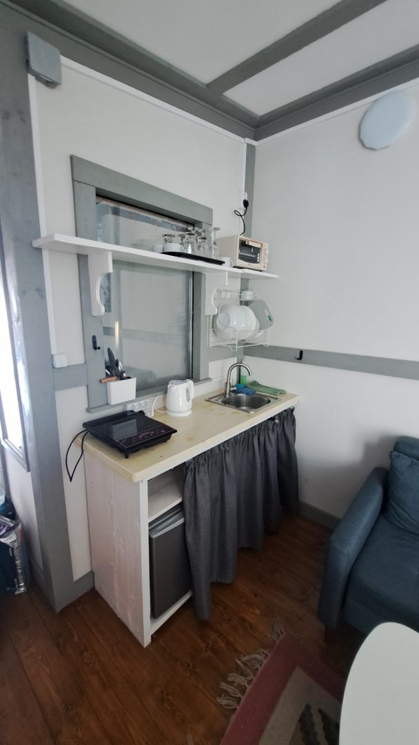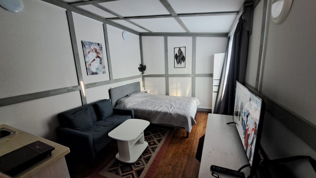 Проживали в домике, уютно и чисто, есть всё для приготовления еды самостоятельно. Имеется холодильник, микроволновка, телевизор рабочий и даже показывает :) на террасе небольшой диванчик со столиком, вечером подсветка красивая. Большая территория, домики находятся в березовом лесу, где полно земляники. Полное единение с природой. Замечательный шведский стол на завтрак! Всё очень понравилось!