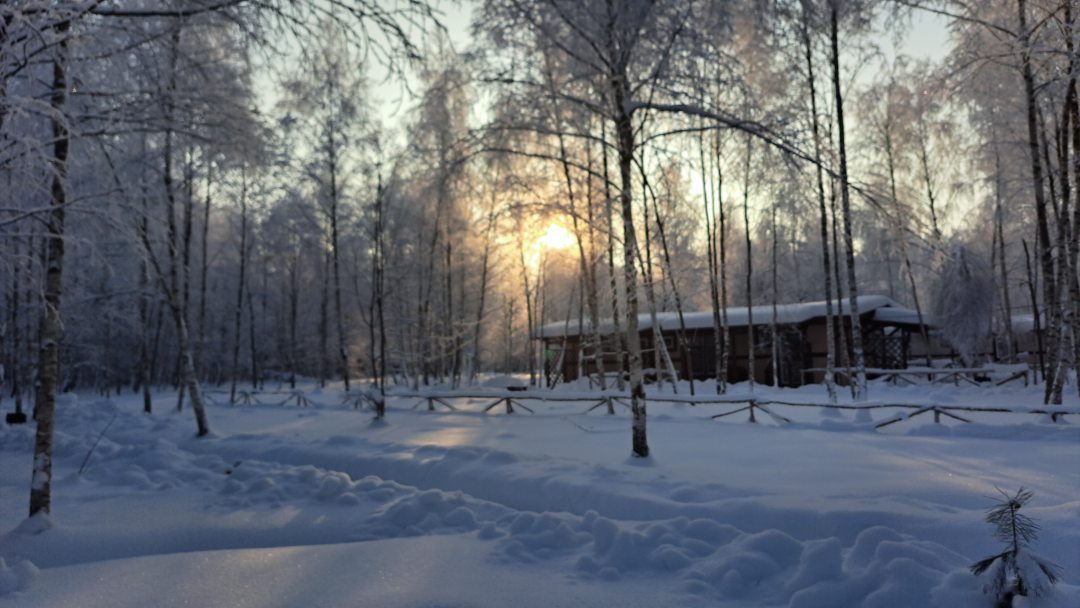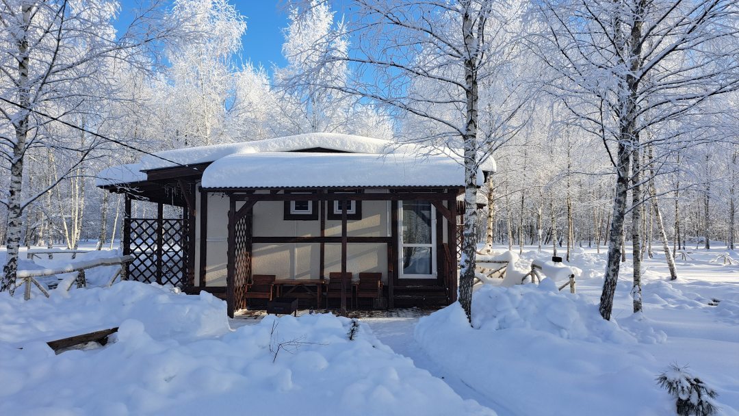 База расположена в лесу живописного места. Отличное место для тихого отдыха. В домике чисто и уютно. Свежее постельное белье. Для приготовления пищи на кухне, индукционная плита, чайник, маленький холодильник, имеется полный набор посуды и столовых приборов,. Рядом с домиком мангальная зона. Отдыхали в самые лютые морозы при этом, в домике было тепло. Отлично греет электрокамин. В ванной комнате лежал набор полотенец, а также зубной набор. Рядом раковиной и ванной в дозаторах гель и шампунь. В стоимость входит завтрак, по системе "Шведский стол". Еда вкусная. Из бонусов, предлогагают бутылочку игристого. В качестве развлечений можно покататься на лыжах, снегоходах, пострелять из пневматики, сходить в баньку на дровах. Огромное спасибо директору комплекса, Олегу, замечательный человек и прекрасный собеседник.