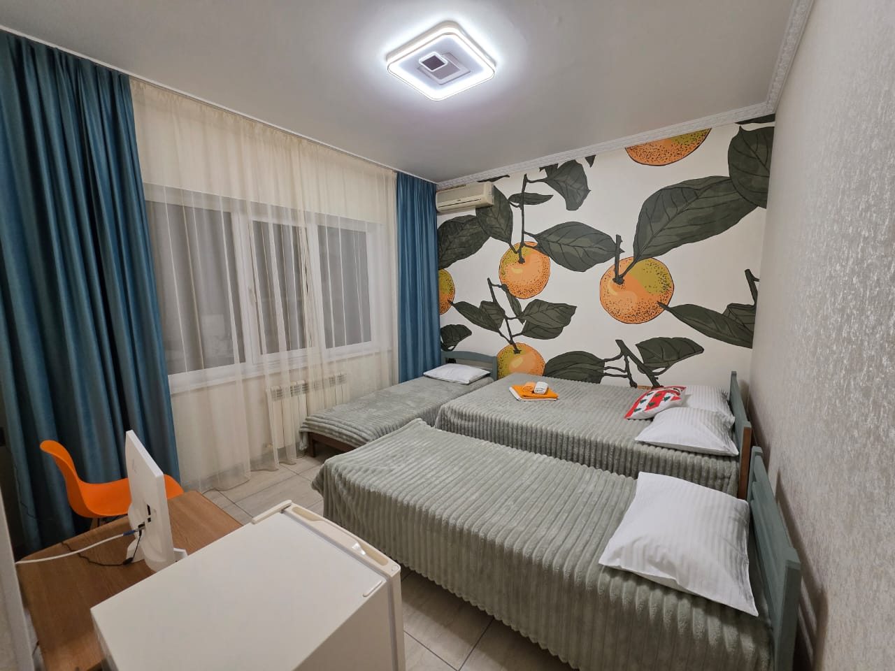 Для размещения представлены номера, выполненные в современном стиле и приятных теплых оттенках. Некоторые из них имеют выход на балкон, откуда открывается прекрасный вид. В оснащение комнат входит все самое необходимое для комфортного отдыха: мебель и техника.