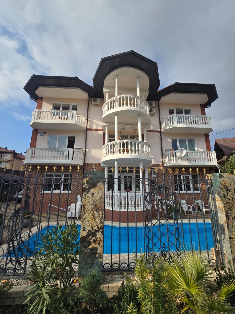 Гостевой дом с очень веселым названием и хорошим оснащением нам понравился. Он немножечко удален от пляжа, но зато это центр поселка. Поэтому вся необходимая развлекательная инфраструктура рядом. В нашем номере был выход на балкон, видами любоваться можно было бесконечно. В Мандарине все нужное есть. Как и места для отдыха на улице. Хозяева очень хорошо ухаживают за домом и за территорией. Здесь много растений и цветов. Для детей есть батуты, детские площадки. Стоящий вариант!