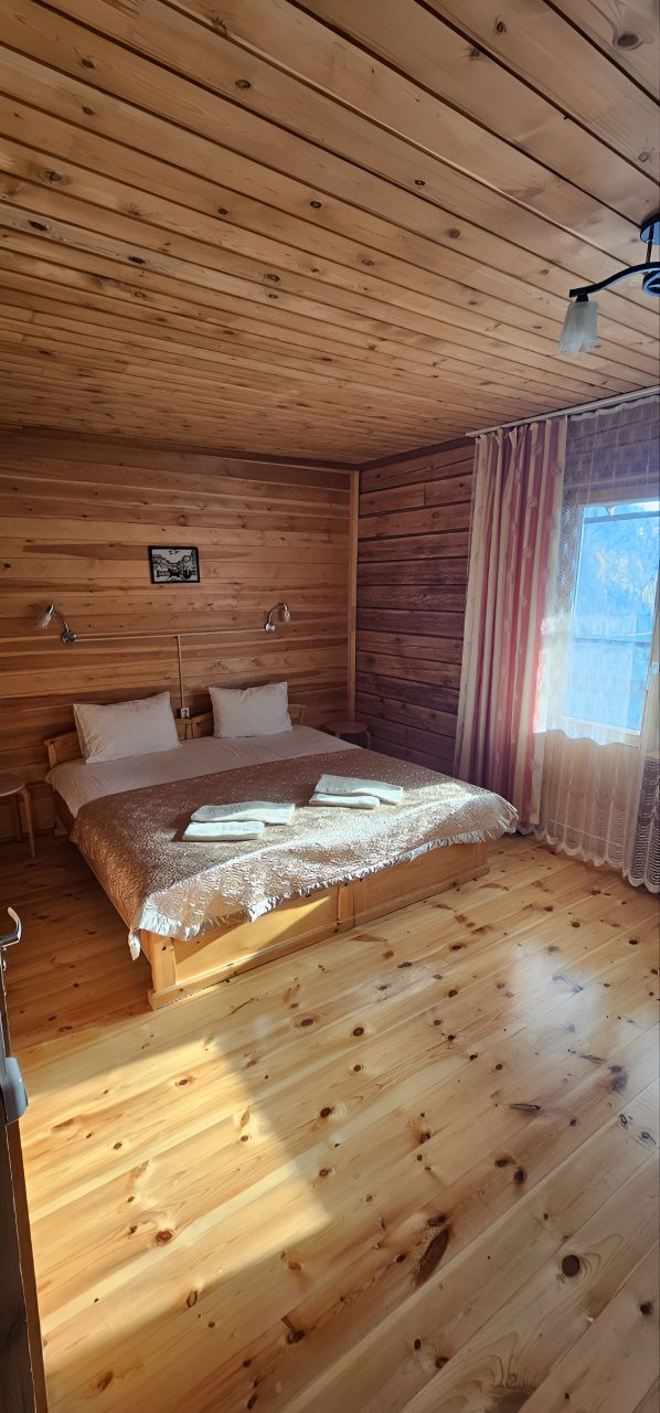 Номер и обстановка точь-в-точь как на фото, все в дереве, в массиве, включая внутреннюю отделку. Отличный вид, абсолютная тишина, отдельная терраса. Рядом - продуктовый магазин с нормальными ценами, завтракала я в кафе рядом (Под парусом), на набережной банкомат Сбера. 10 минут до пляжа со смотровыми площадками возле обсерватории. Порт, колесо обозрения, автовокзал, главное, БАЙКАЛ - все рядышком.