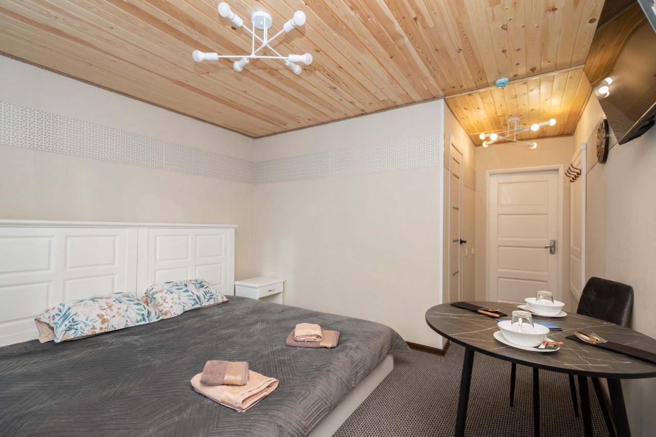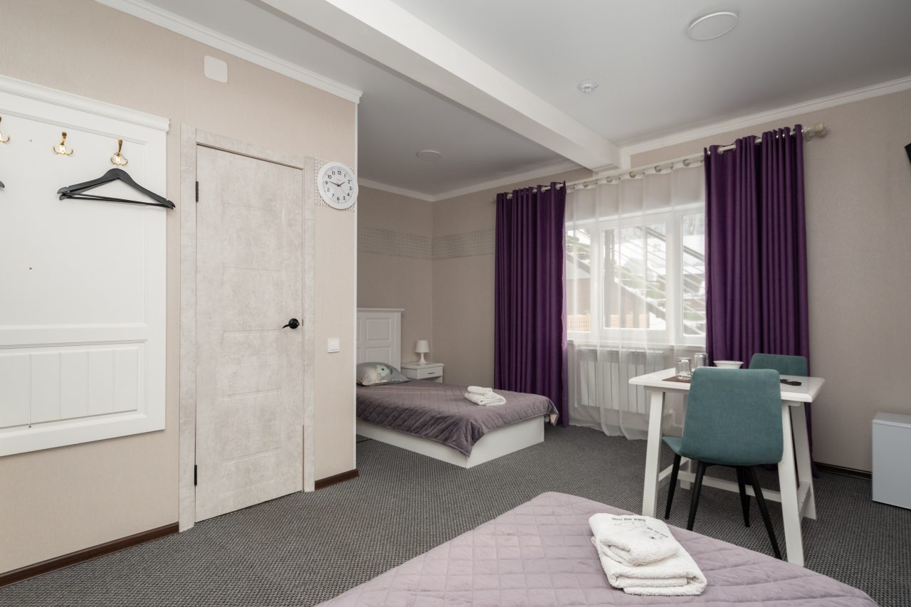 Приехали раньше на сутки, нас разместили в номере который мы и бронировали! Мы забронировали семейный номер, это оказался не домик, а номер в мини отеле, но мы сами были невнимательны когда выбирали, мы ни чуть не расстроились, у нас был выход на нашу террасу со столиком и качелей! Отель чистый, хозяева стараются! Вика умничка!