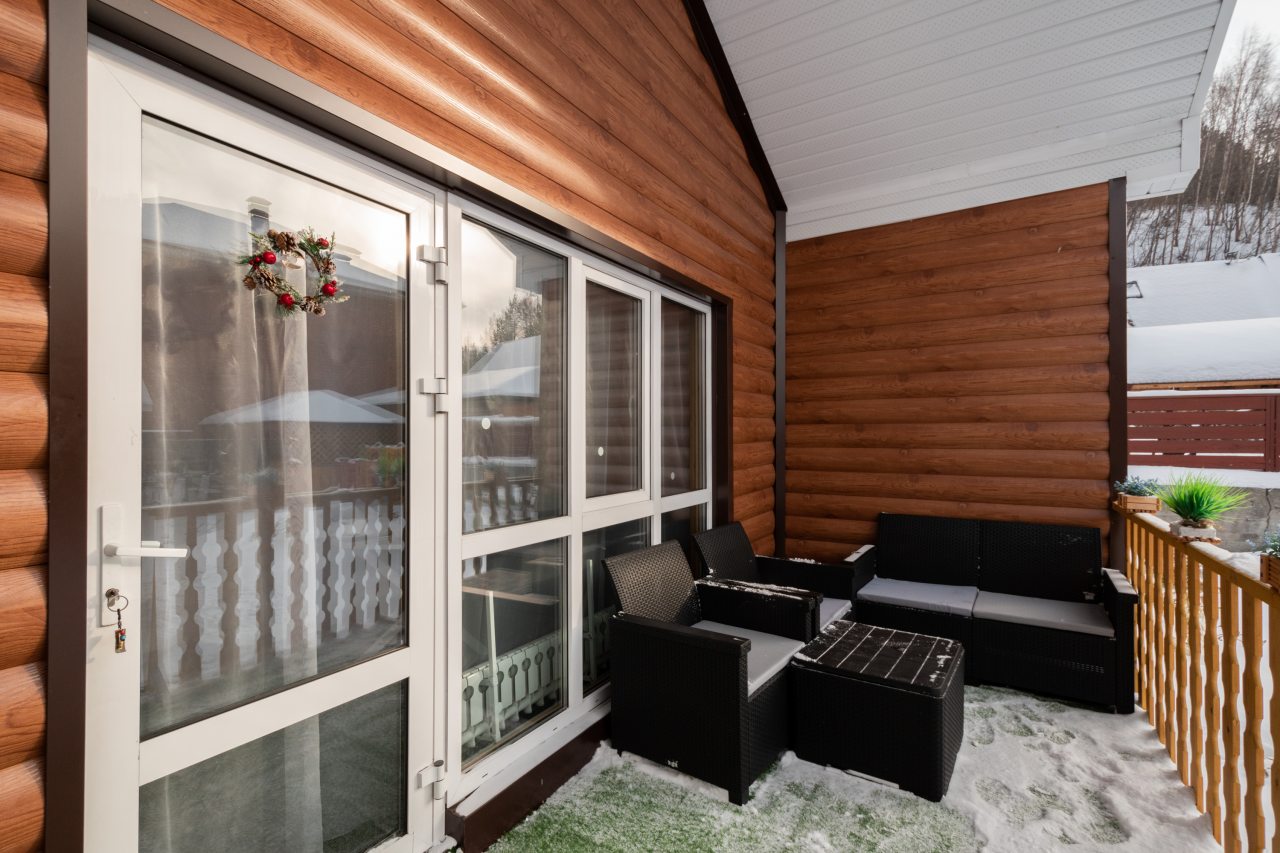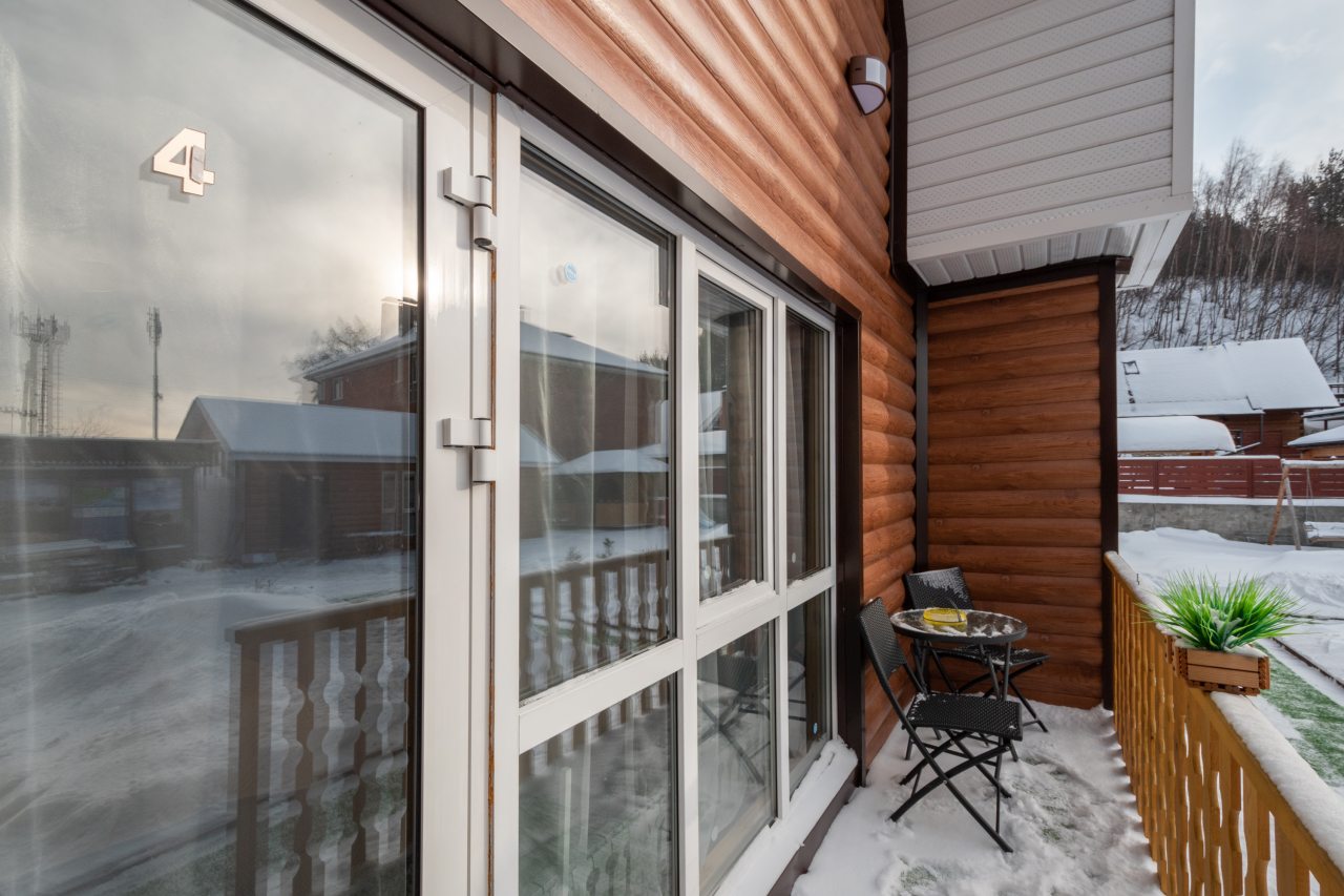 Понравилась локация, уютно, тихо, красиво, есть зона барбекю, беседка, качели у каждого домика, рядом магазин и все топовые места листвянки. Парковка, ухоженная территория, много цветов.