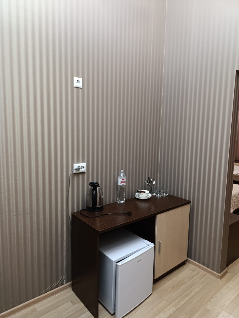Огромный номер, телевизор, сплит, холодильник, чайник, все что нужно для комфортного проживания. В номере чисто и удобная парковка в тенечке(в жару самый раз)