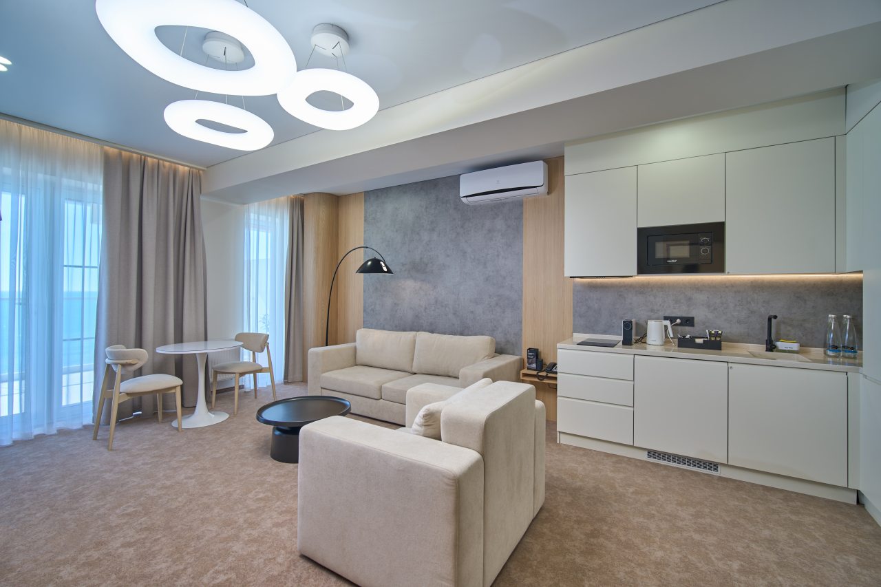 «Golden hills Апарт&СПА отель 5» представляет собой стильный и современный всесезонный отель, который расположился в Лермонтово, на первой береговой линии Чёрного моря. Здесь сочетаются высокие стандарты комфорта, дизайн и забота о гостях. Благодаря удачному расположению отеля, вы сможете насладиться природой и свежим воздухом вдали от городской суеты, а также у вас будет возможность созерцать невероятные закаты и рассветы, восполнить внутренние силы и энергию.