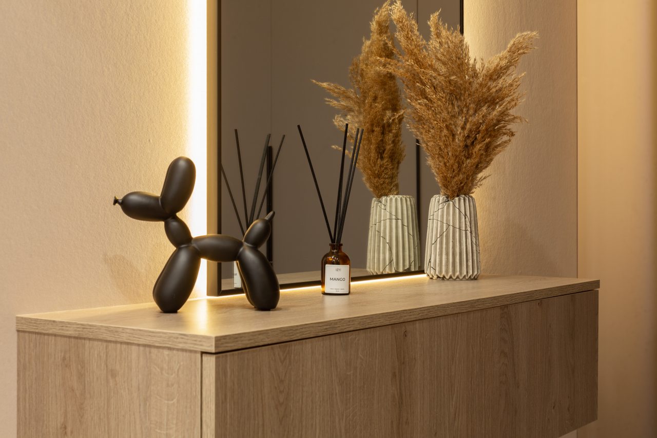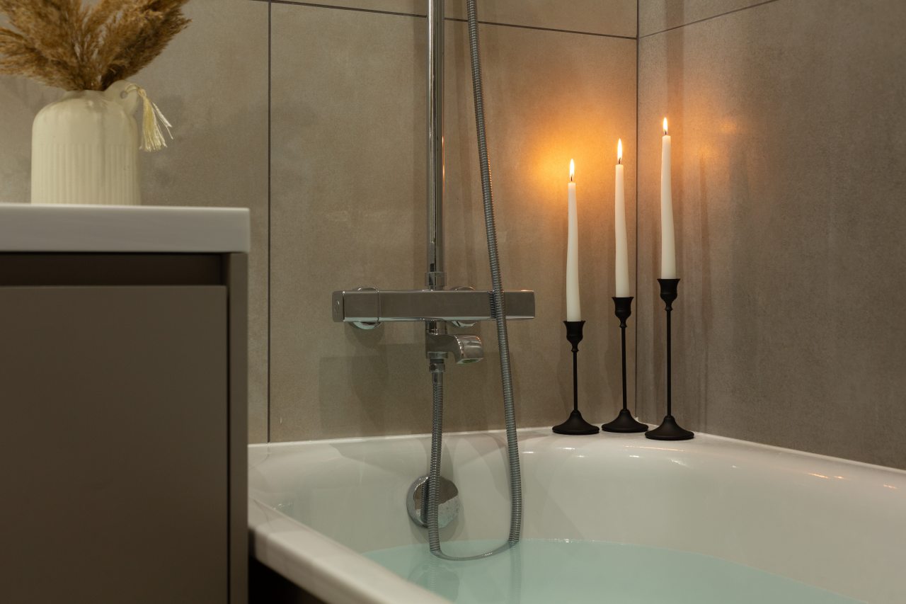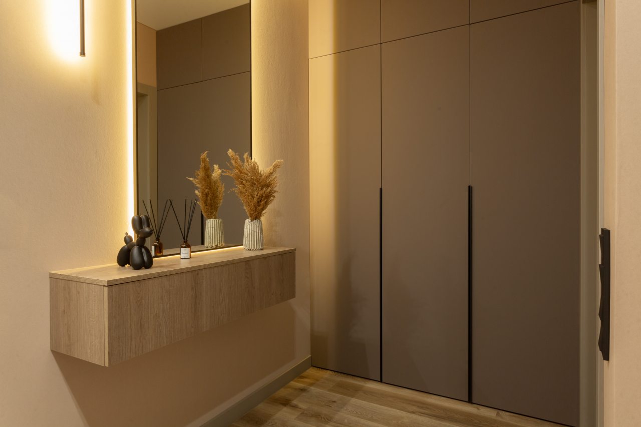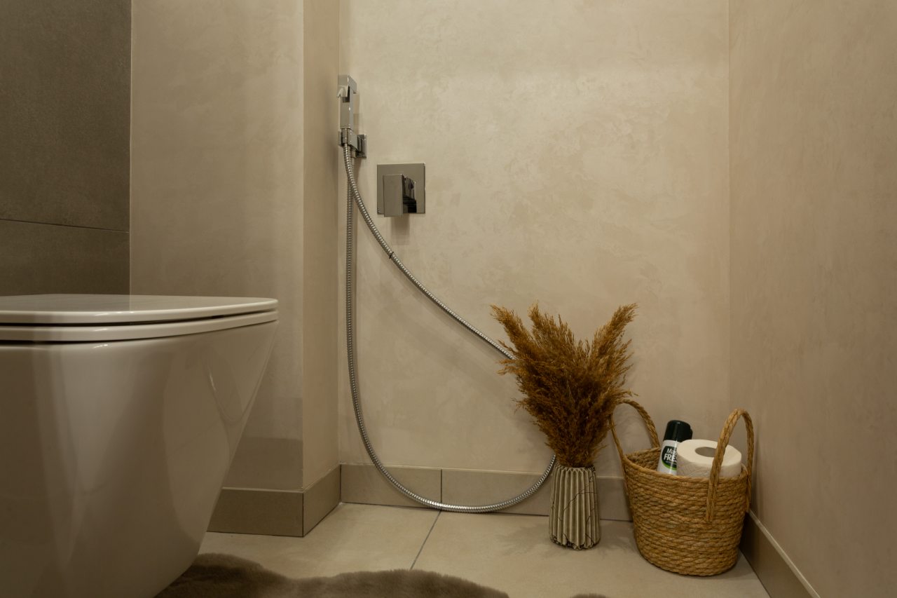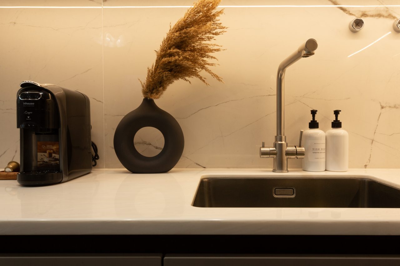 Стильная кухня оснащена комплектом гарнитура, обеденным столом и всей необходимой бытовой техникой, например: холодильником, посудомоечной машиной, электрочайником, кофемашиной, микроволновой печью, электроплитой, духовым шкафом. В доступности продуктовые магазины и кафе.