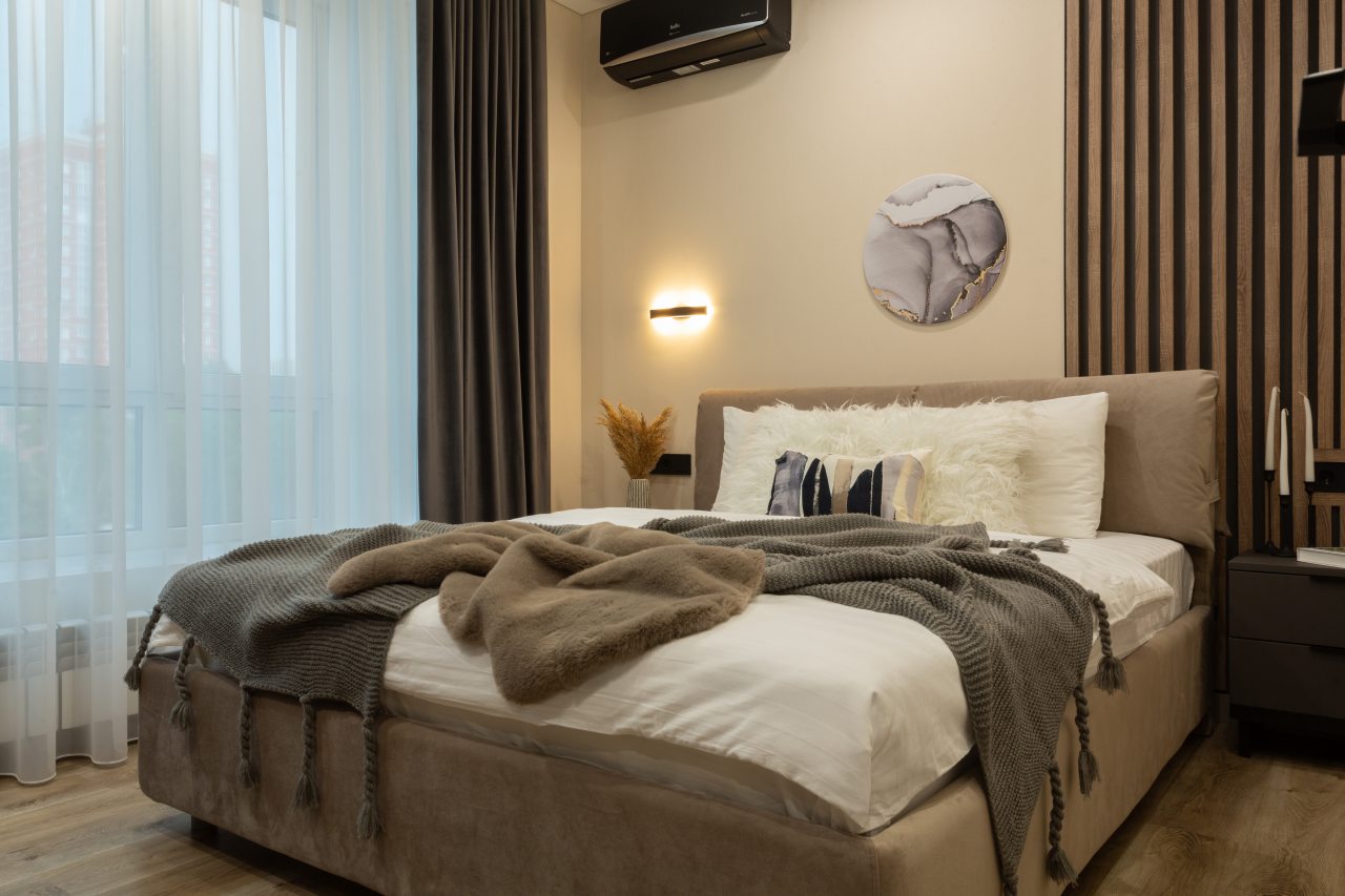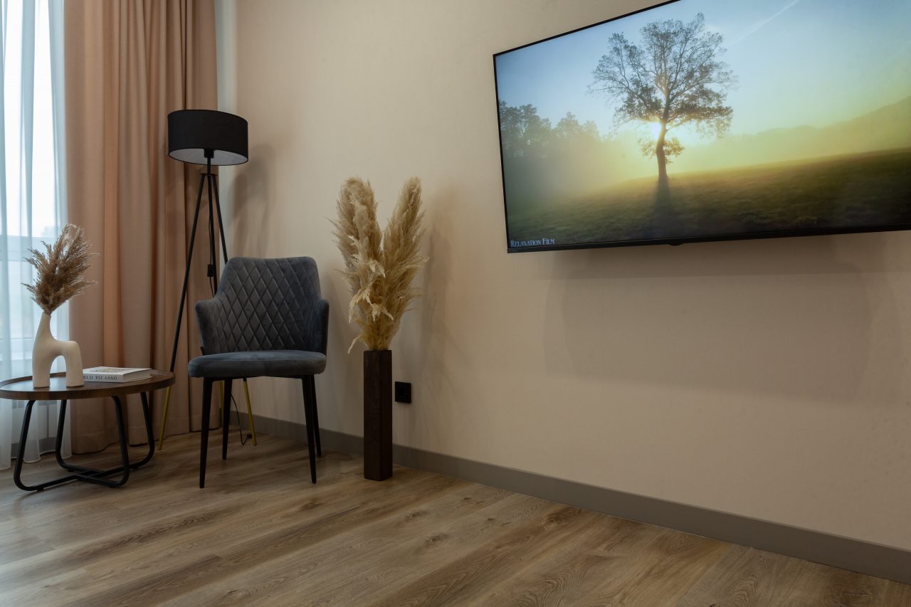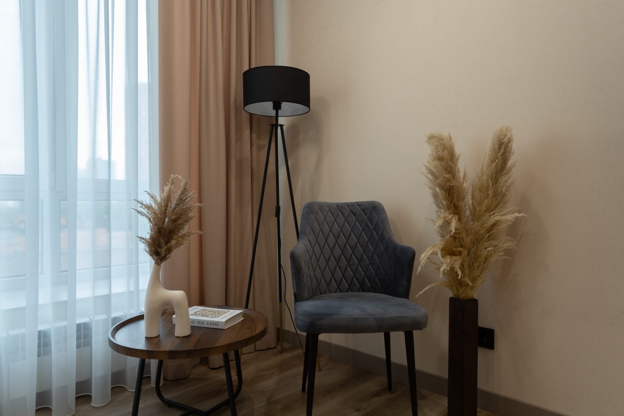 Квартира с современным ремонтом укомплектована удобными спальными местами со свежим постельным бельем, большими окнами, затемненными шторами, кондиционером, розетками возле кровати, шкафом для хранения личных вещей и др. Доступна Яндекс.Станция, ЖК-телевизор с цифровым телевидением и точка высокоскоростного интернета. Санузел оборудован ванной, гигиеническим душем, стиральной машиной, сушильной машиной, феном и средствами личной гигиены.