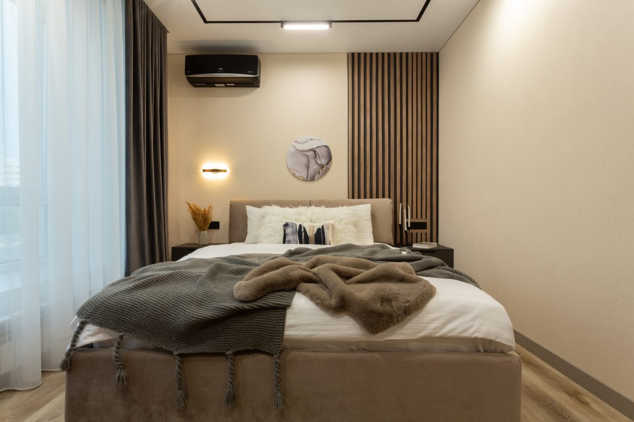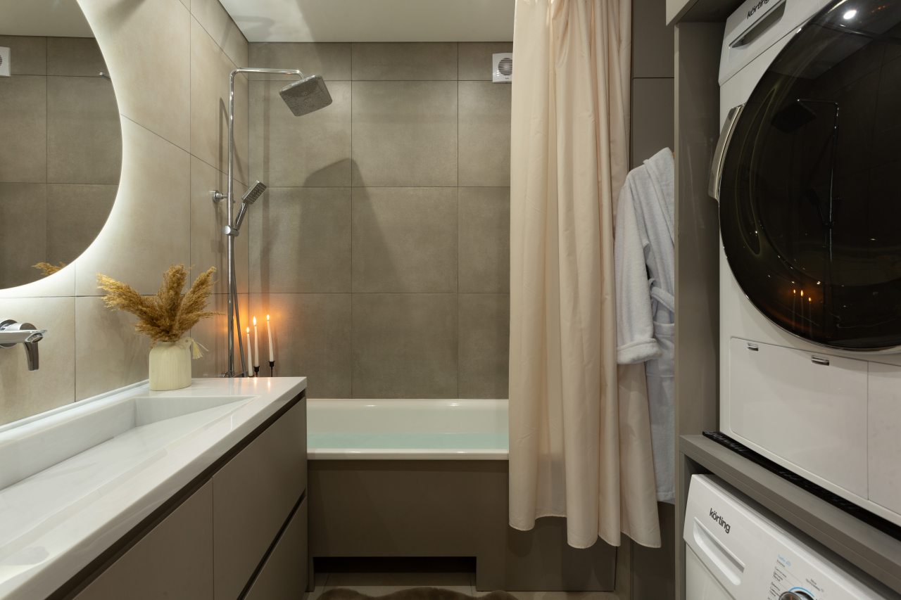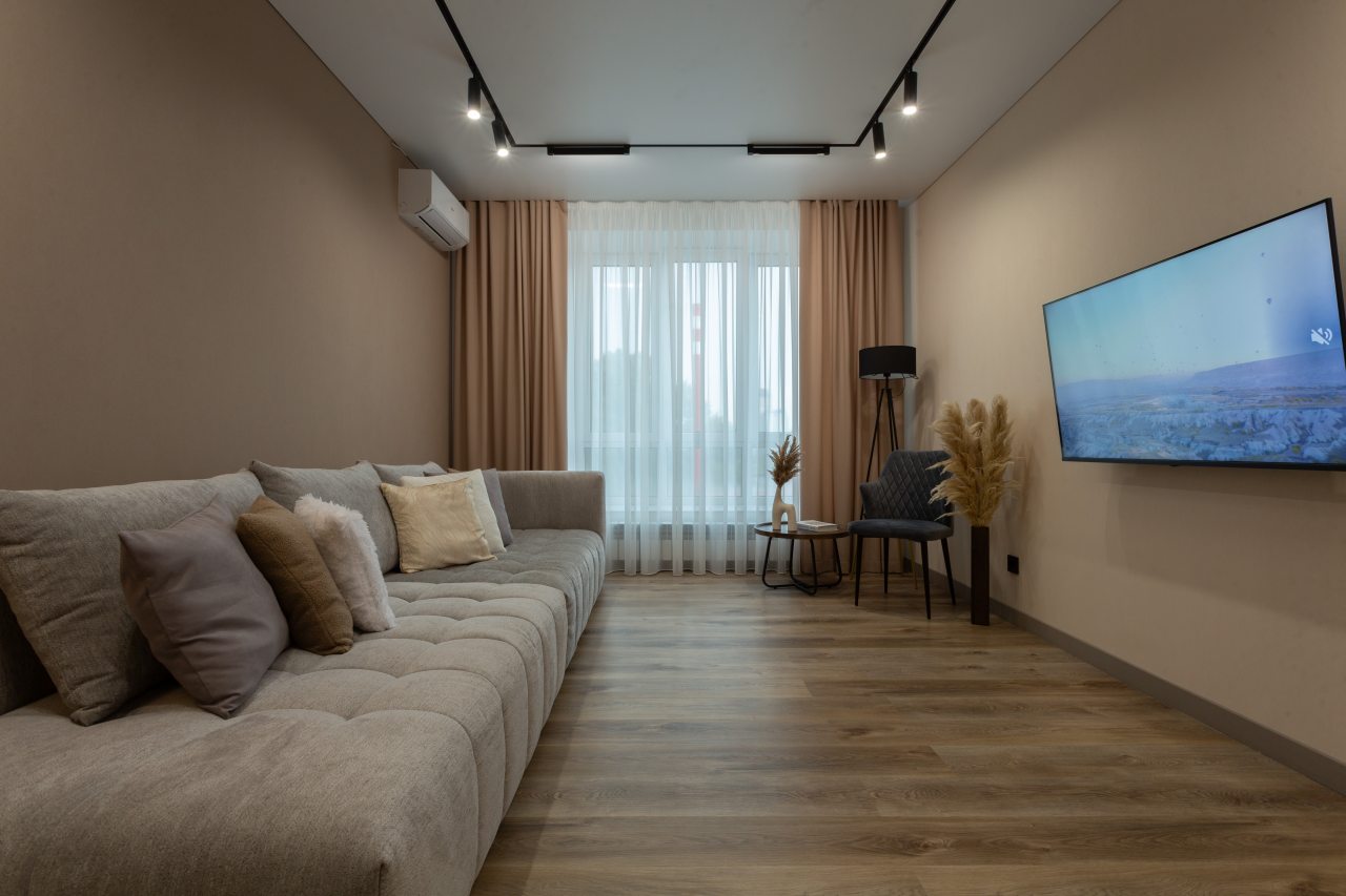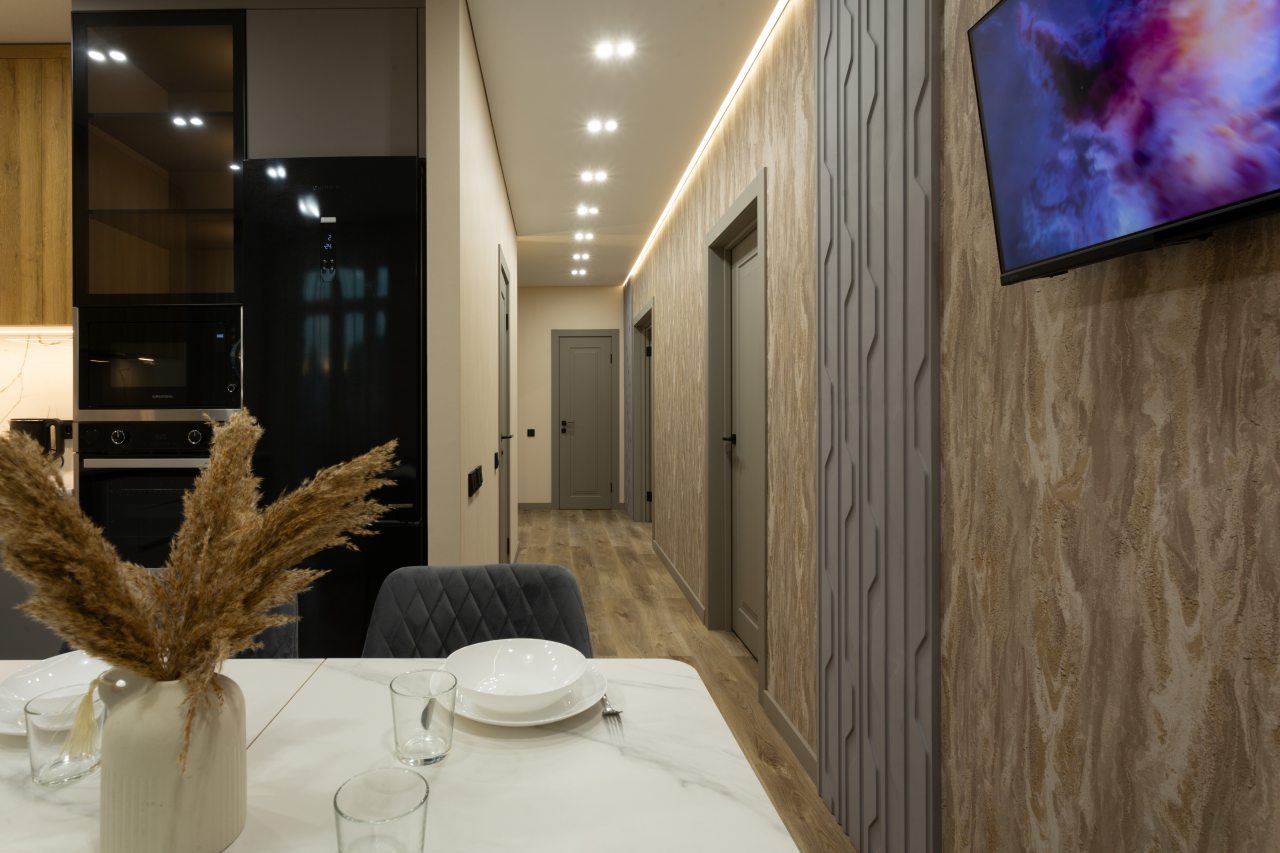 Квартира с современным ремонтом укомплектована удобными спальными местами со свежим постельным бельем, большими окнами, затемненными шторами, кондиционером, розетками возле кровати, шкафом для хранения личных вещей и др. Доступна Яндекс.Станция, ЖК-телевизор с цифровым телевидением и точка высокоскоростного интернета. Санузел оборудован ванной, гигиеническим душем, стиральной машиной, сушильной машиной, феном и средствами личной гигиены.
