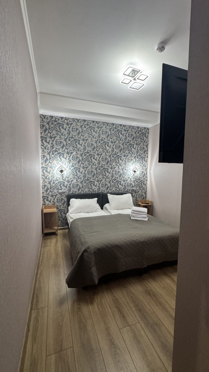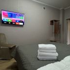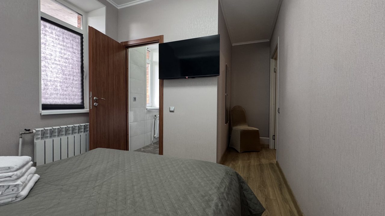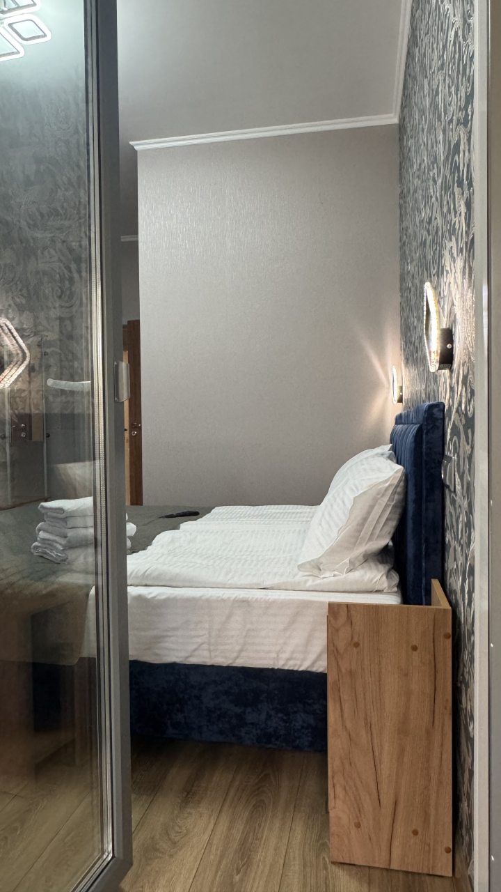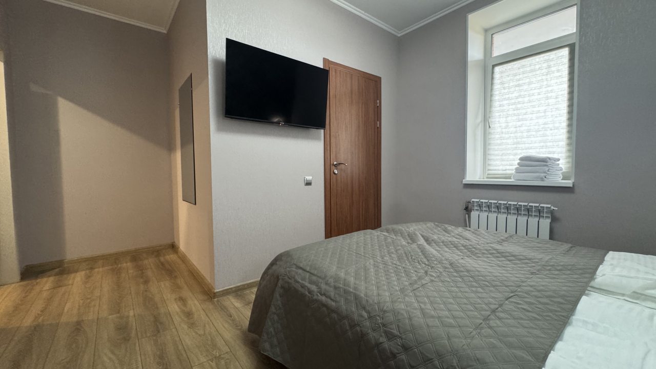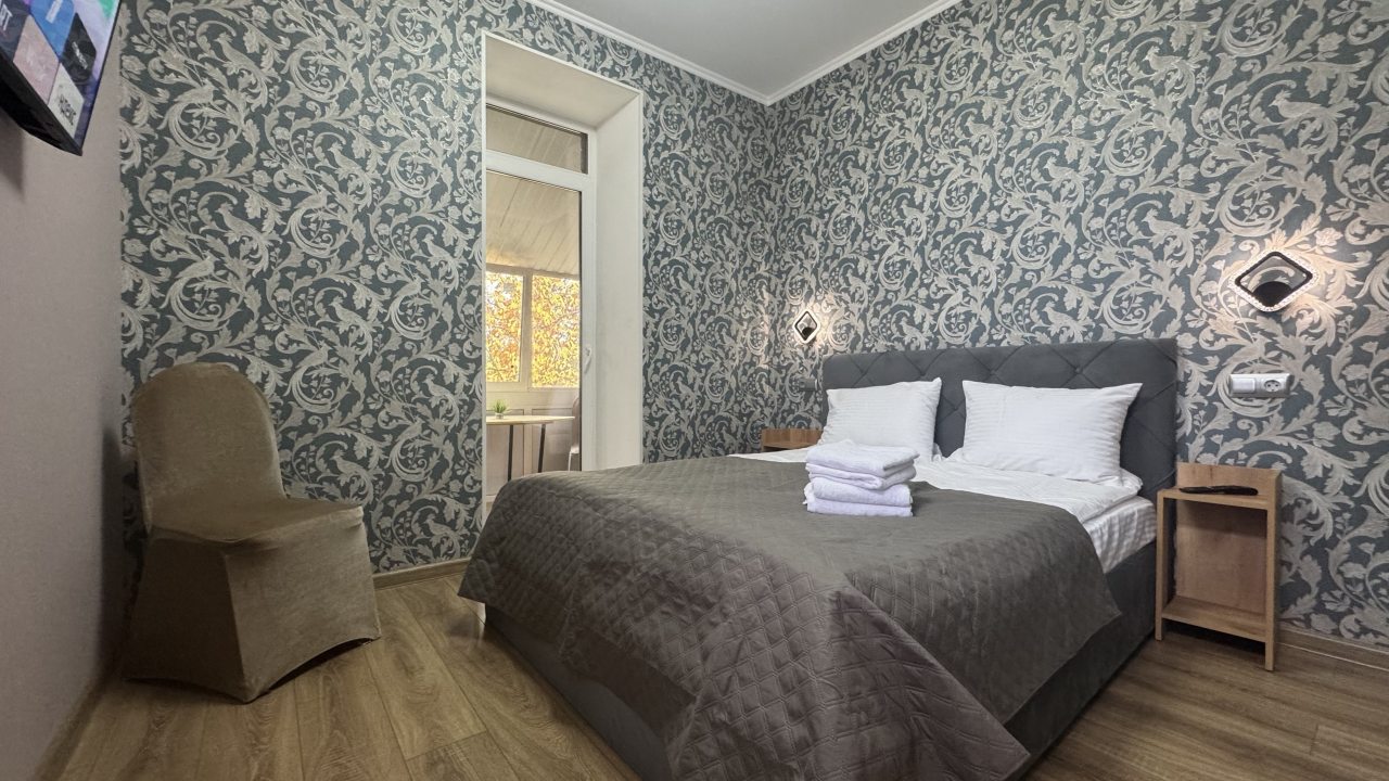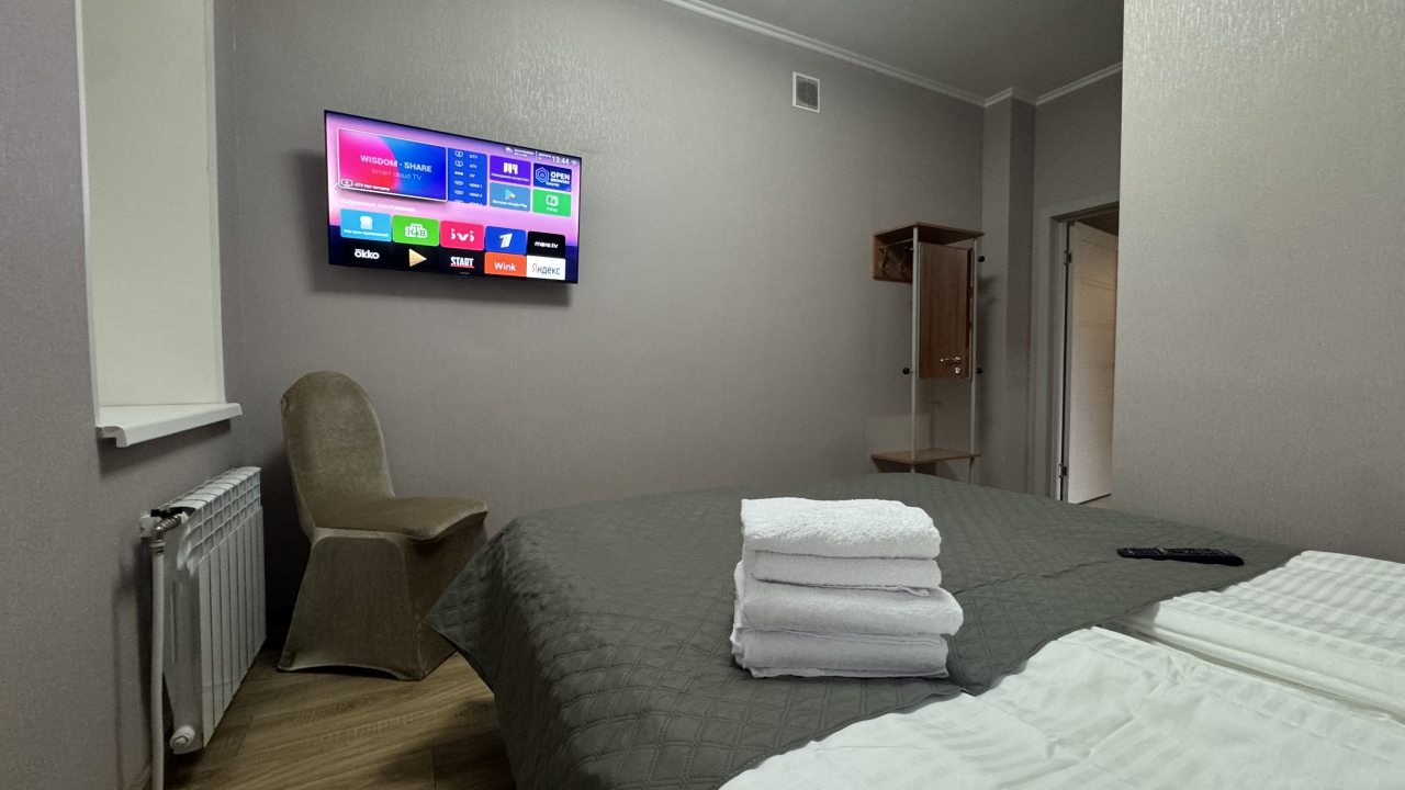 Внутри гостей ожидает качественная мебель и техника, включая удобное спальное место, прикроватные лампы и тумбы, индивидуальный санузел с душевой и другой необходимой сантехникой.