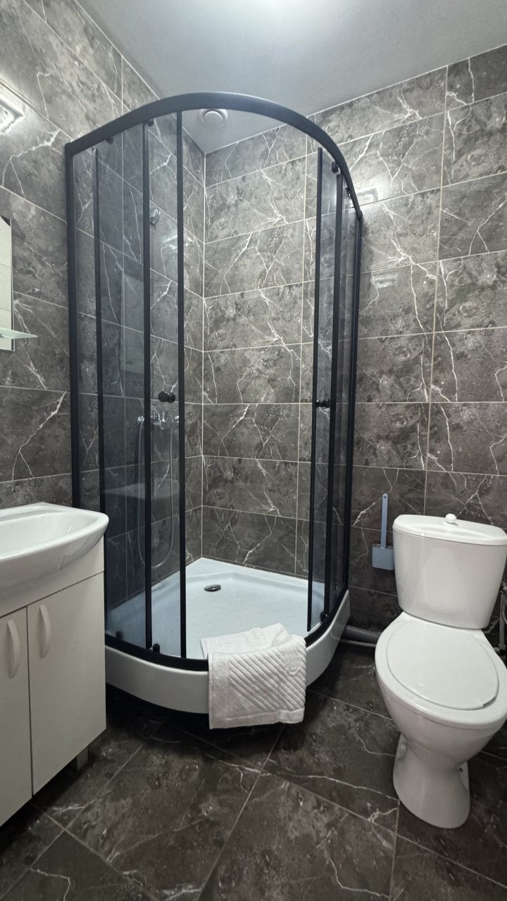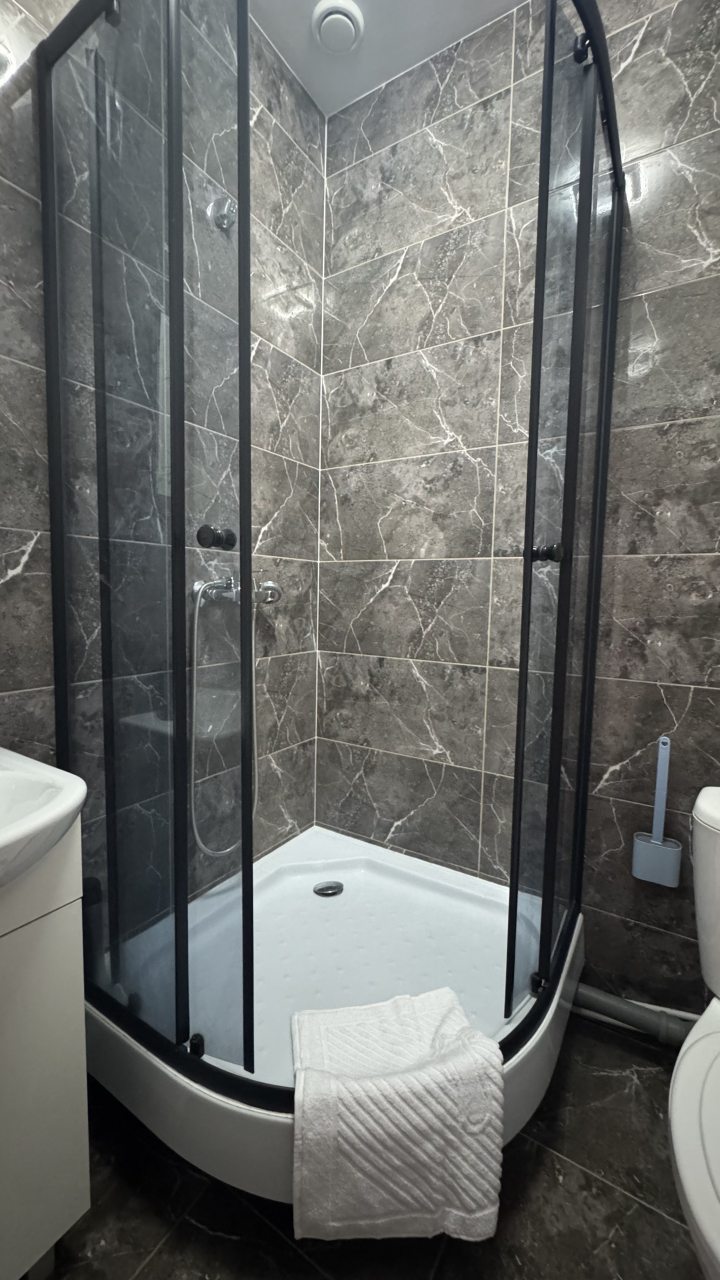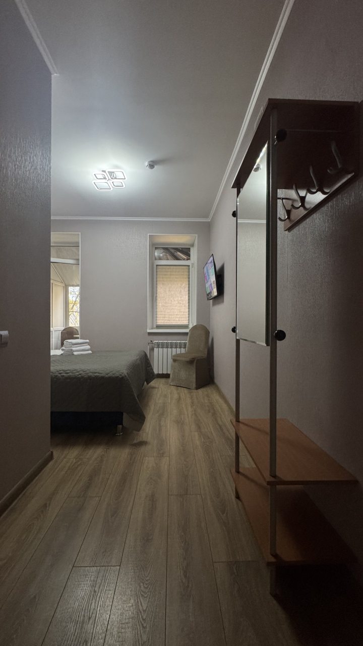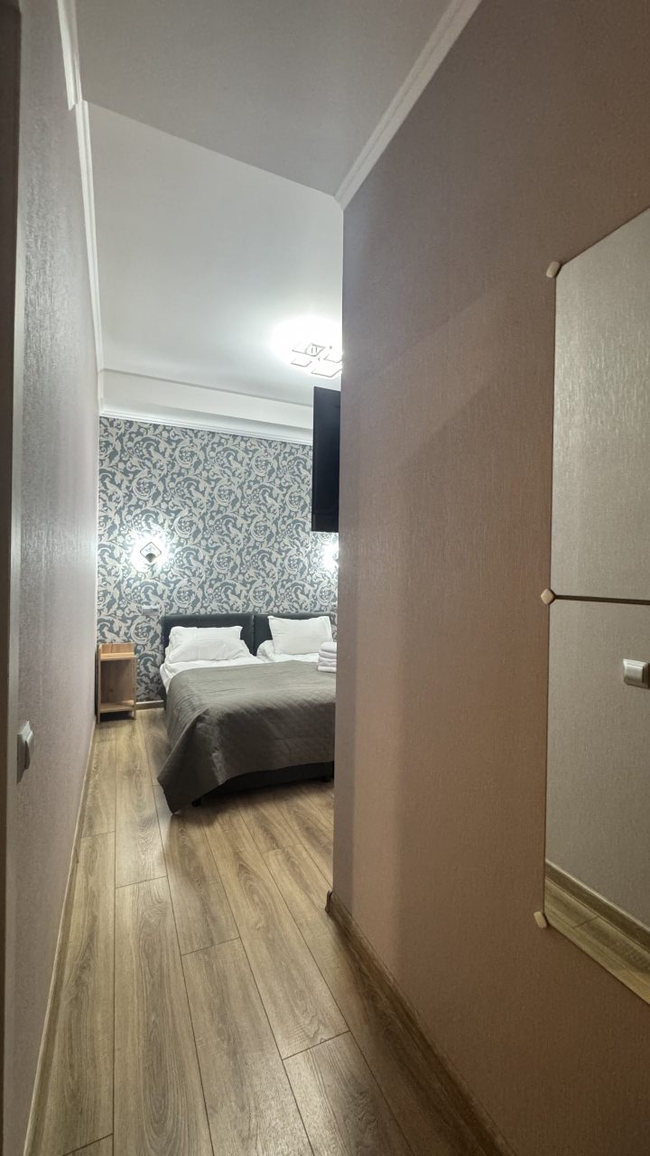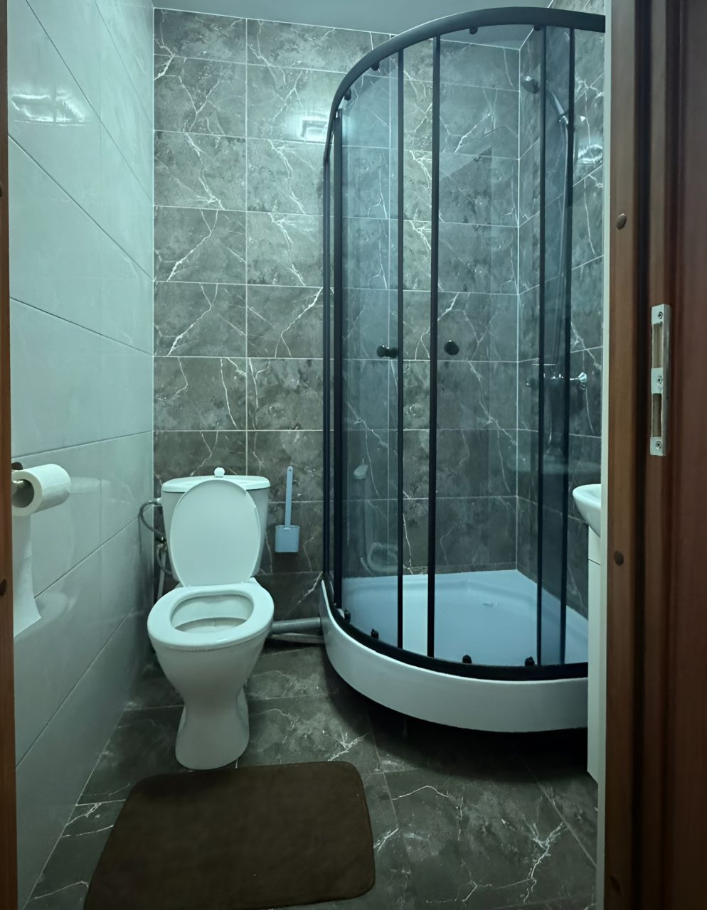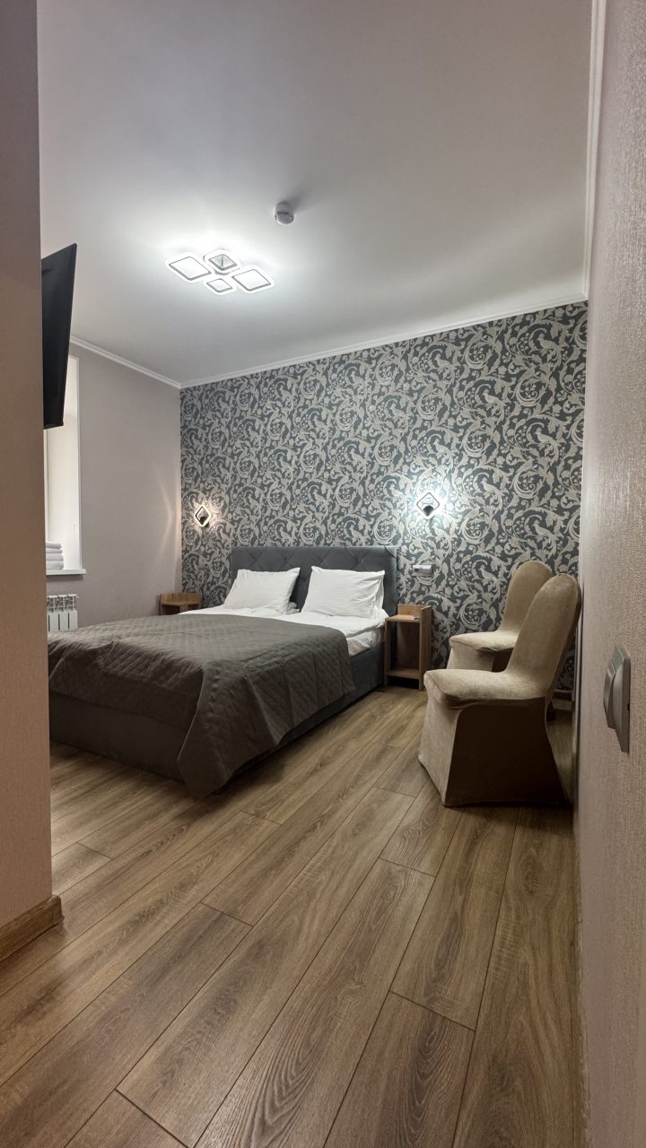 Внутри гостей ожидает качественная мебель и техника, включая удобное спальное место, прикроватные лампы и тумбы, индивидуальный санузел с душевой и другой необходимой сантехникой.