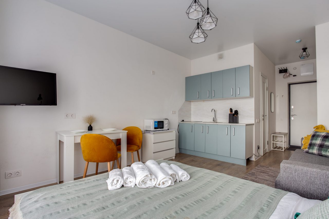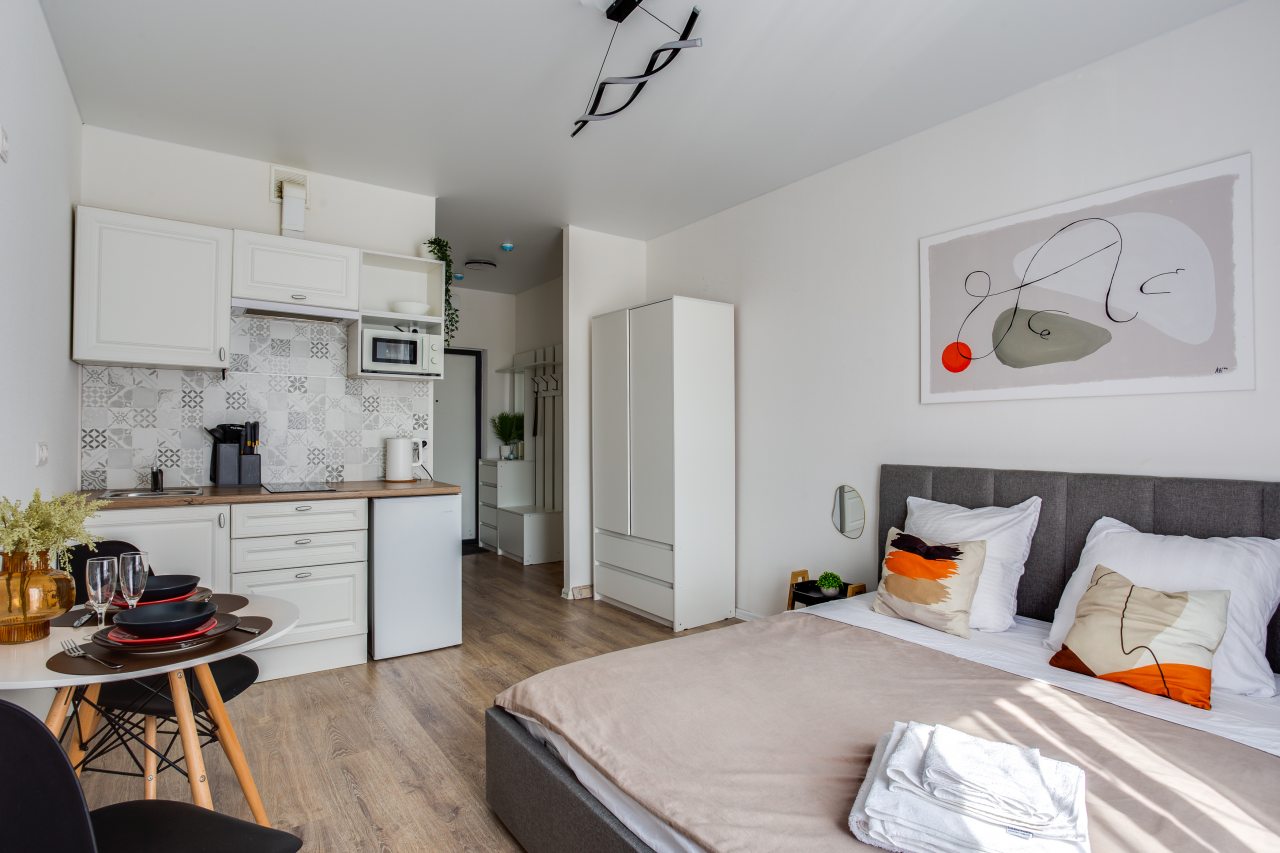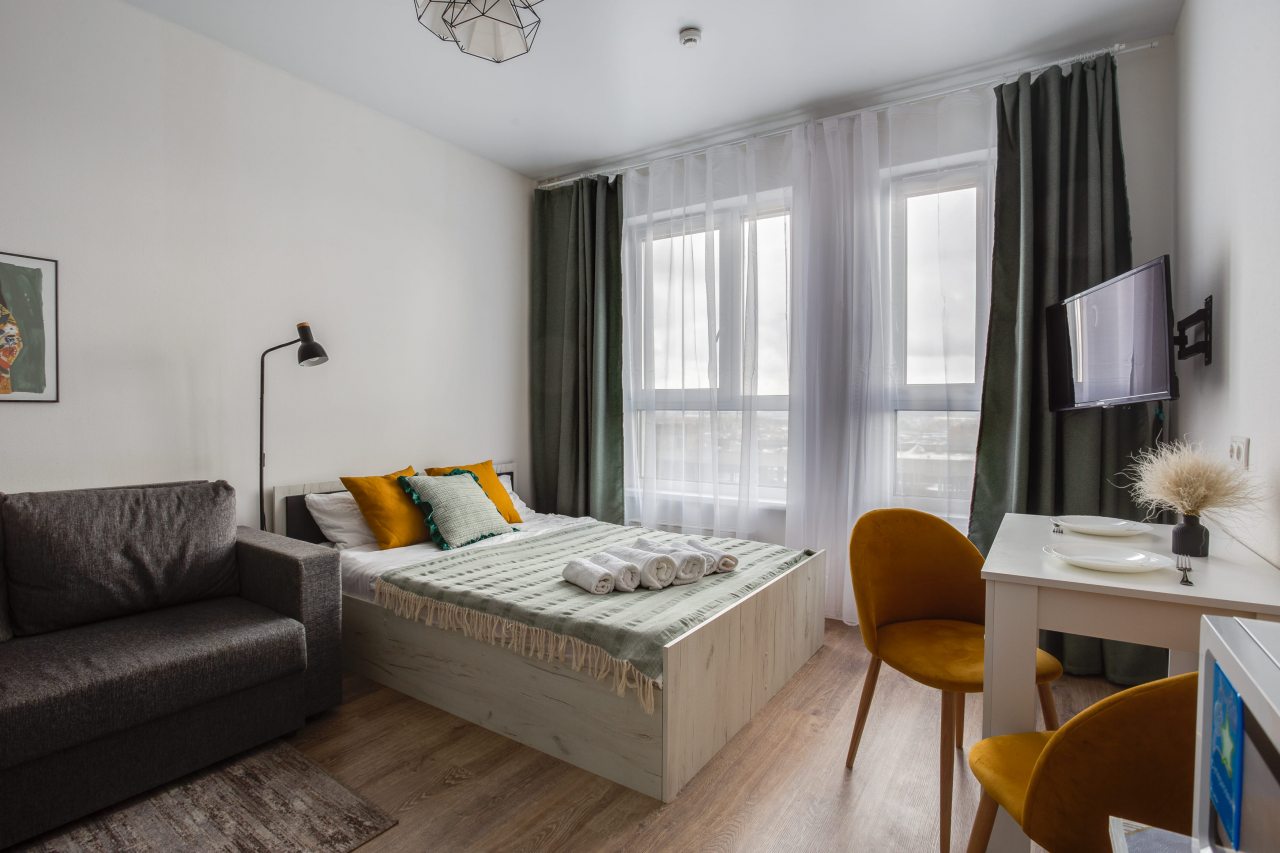 Приятная и просторная студия. Проживали здесь несколько дней с молодым человеком. Остались довольны. Квартира чистая, просторная. Также порадовало расположение, поблизости есть магазины, кафе. Однозначно будем рекомендовать!