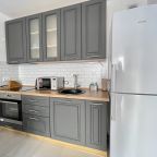 На кухне вы сможете готовить любимые напитки и блюда, так как в наличии плита, СВЧ-печь, чайник, холодильник, обеденная зона. Комплектация кухонной бытовой техники также зависит от категории.
