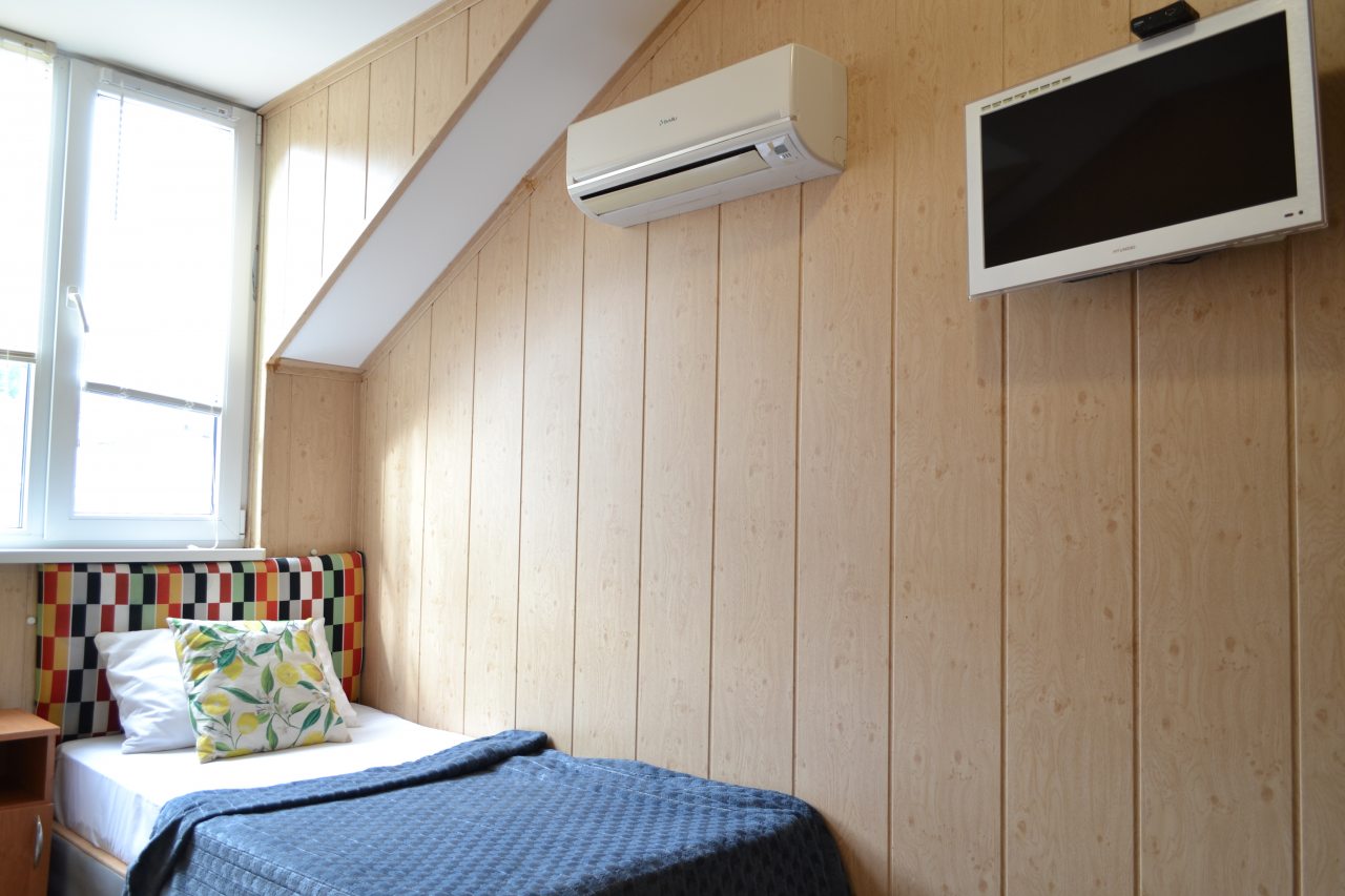 В номере чисто, постельное белье белоснежное . Кондиционер,небольшой холодильник,фен ( все необходимое есть для комфортного проживания)