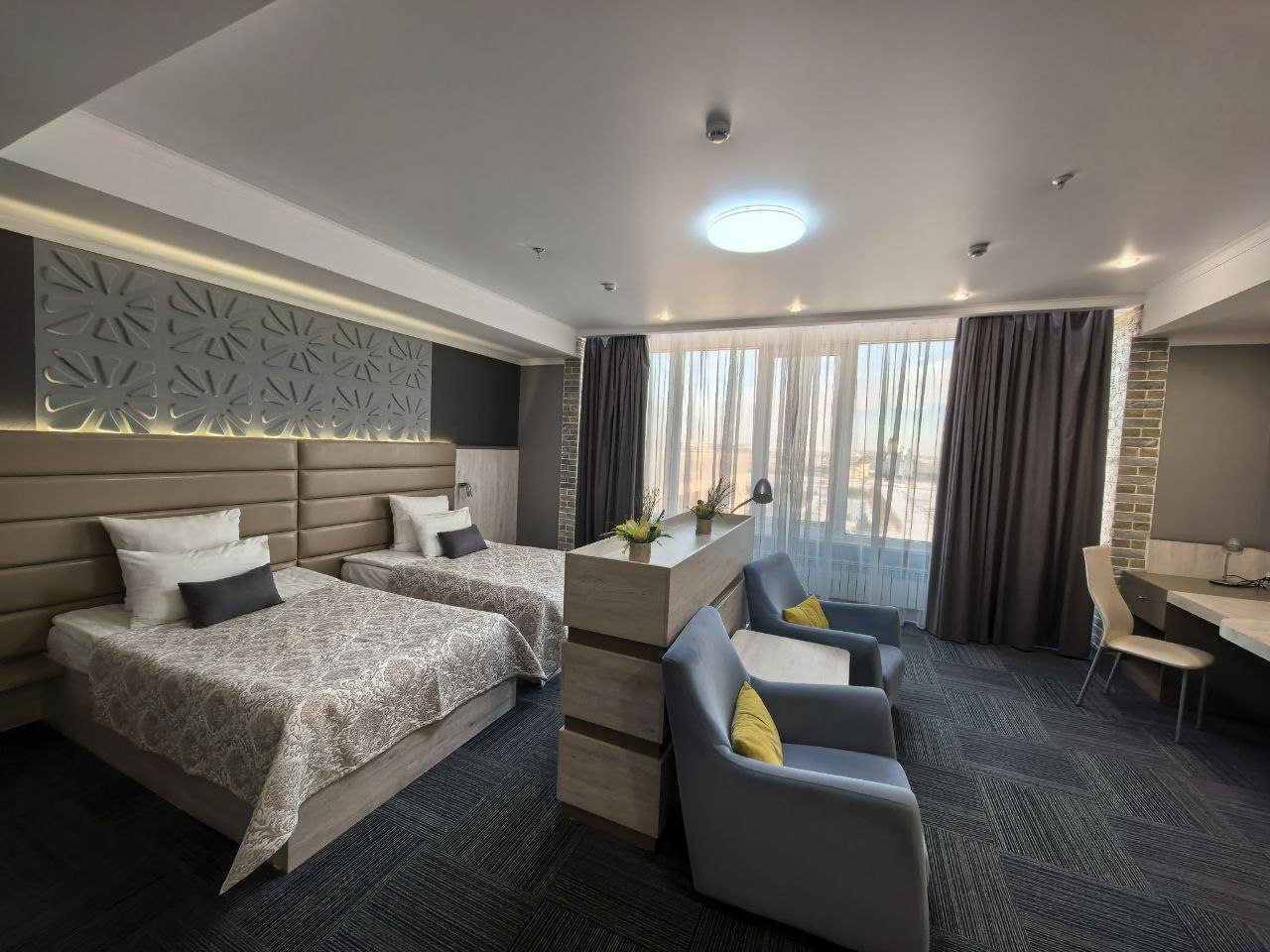 В гостинице Форум мы провели 5 дней. Оформили бронирование заблаговременно, так как поездка была спланированной. Обслуживание в отеле хорошее, персонал быстро реагирует на запросы постояльцев. Санузел в номере у нас был отдельным. В нем предоставлены халаты, средства гигиены, фен. Кровать отличного качества, просторная, с белоснежными простынями и хорошими подушками.