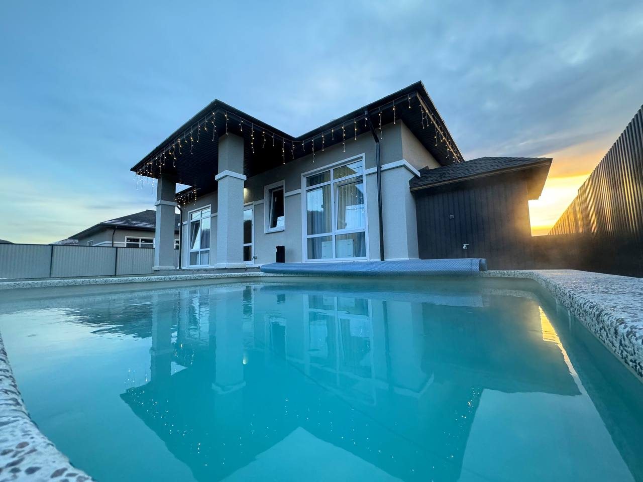 Приехали компанией отдыхать!Дом чистый,уютный!есть зона для шашлыка!бассейн тёплый,вода чистая