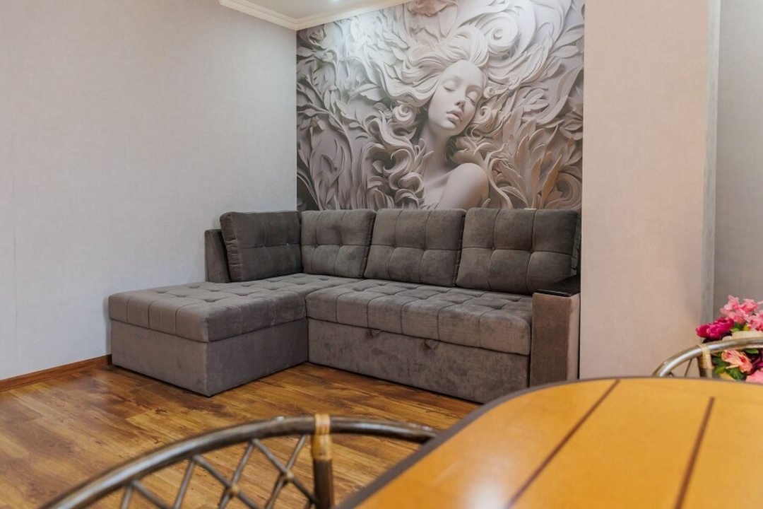 Уютные и комфортабельные апартаменты «С двуспальной кроватью и диваном» территориально находятся в Махачкале, рядом с Ботаническим садом.
