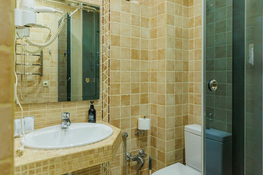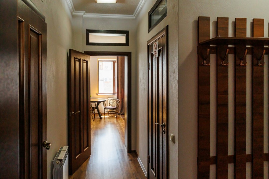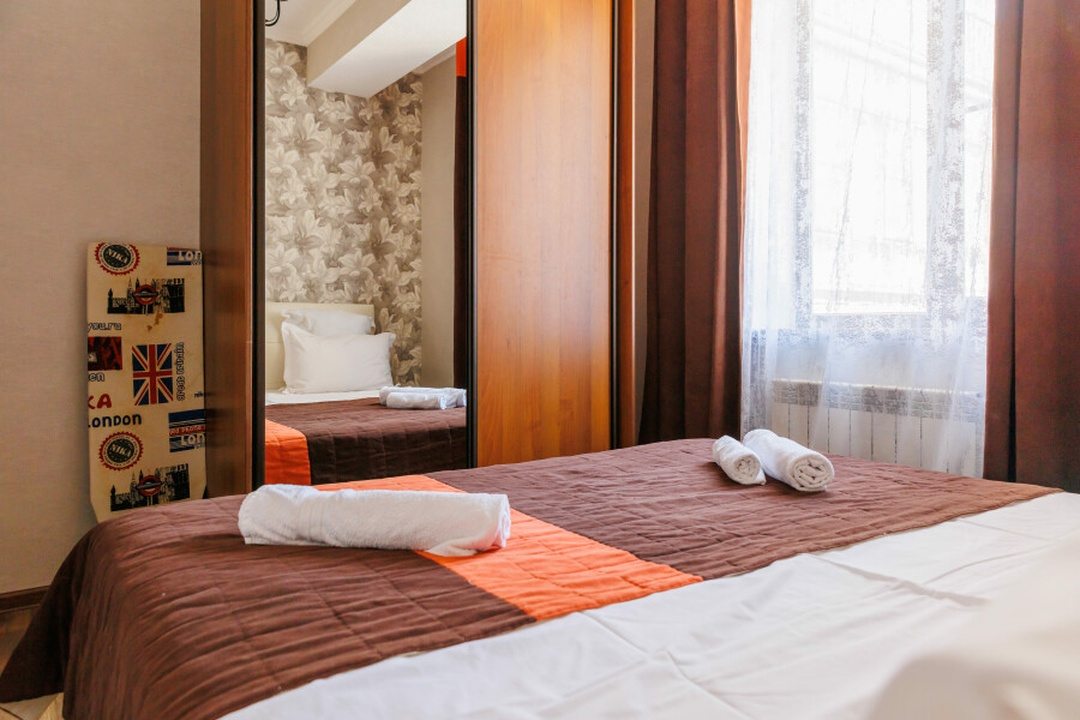 Это хороший вариант для проживания небольшой компанией или семьей, так как в наличии удобная двуспальная кровать и мягкий раскладной диван. Также предусмотрены затемненные шторы для лучшего сна, телевизор, кондиционер, шкаф с зеркалом, полотенца, санузел с душевой, феном и необходимой сантехникой.
