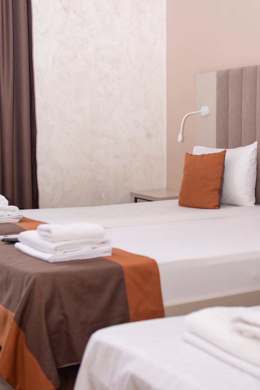 К размещению предлагаются категории от «Стандартных» до «Люкса», в которых есть всё для комфортного проживания. В распоряжении гостей будут удобные спальные места, Wi-fi, кондиционер, телевизор, мини-холодильник. Собственная ванная комната укомплектована феном.