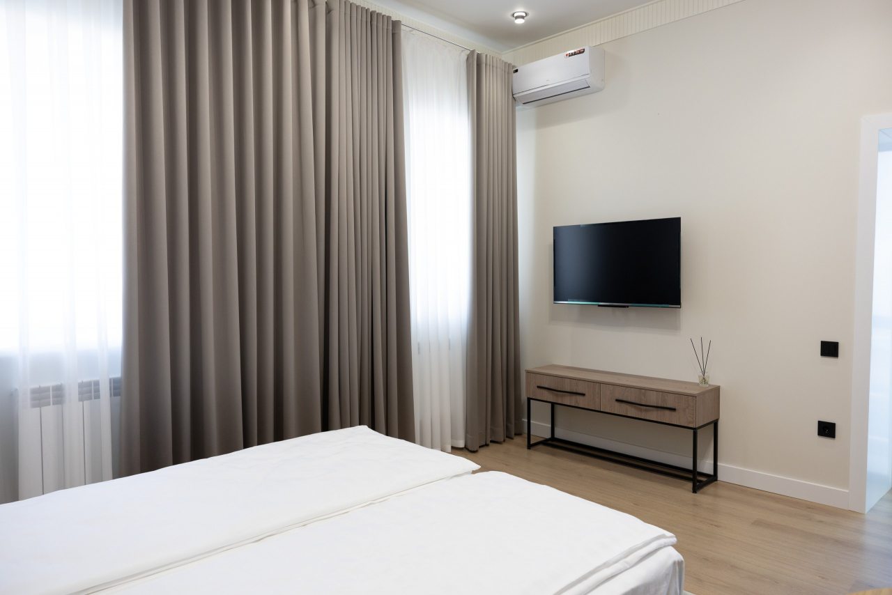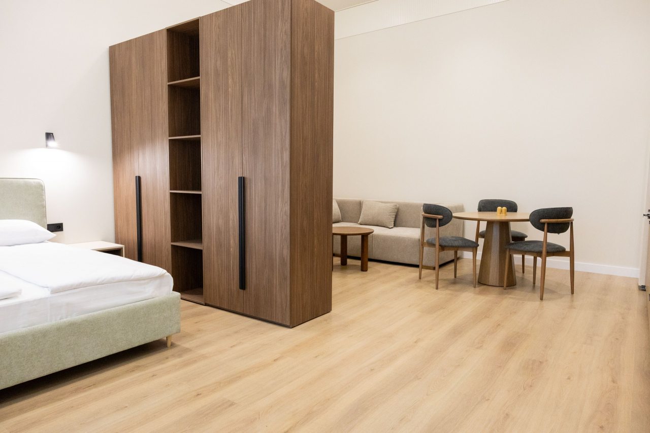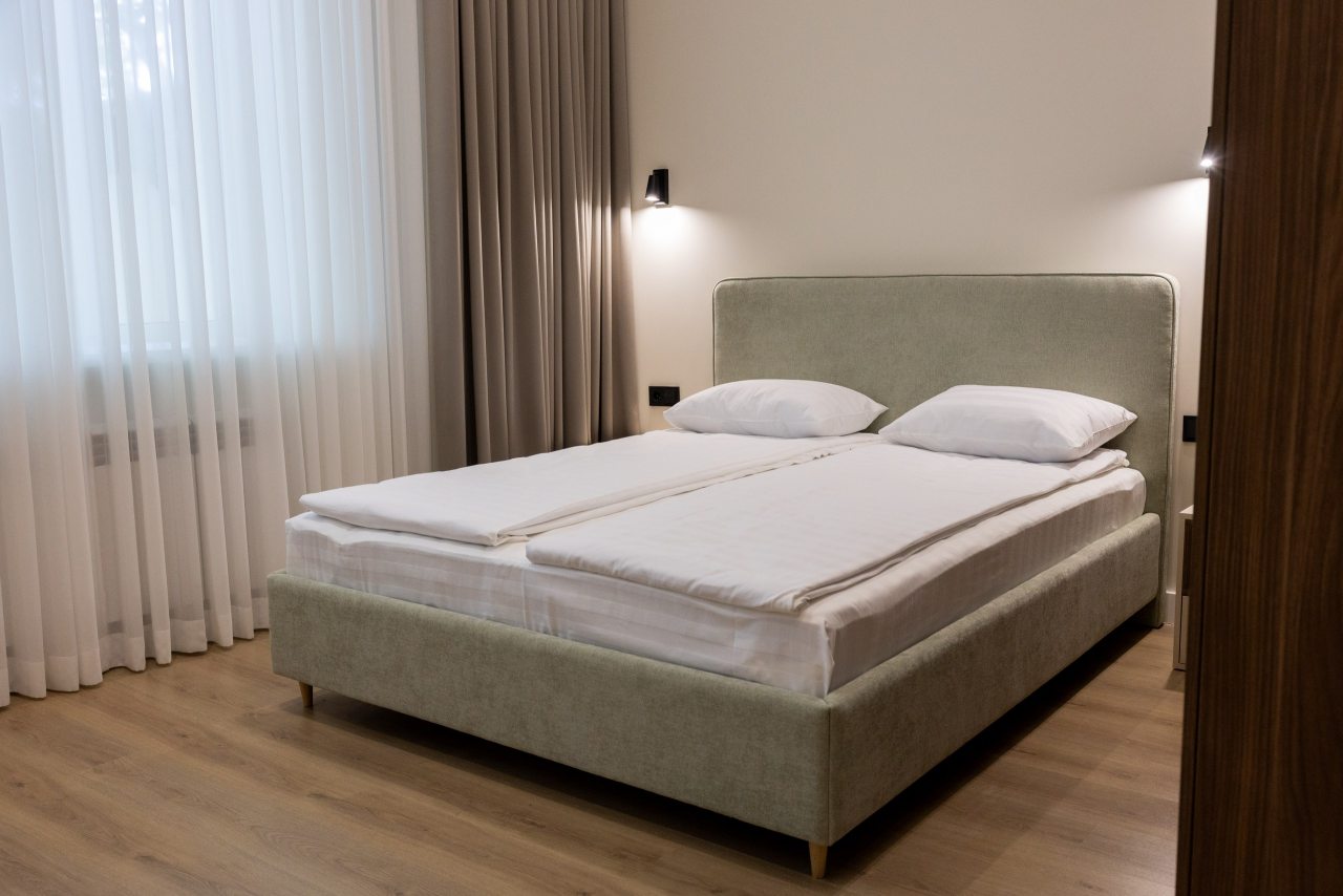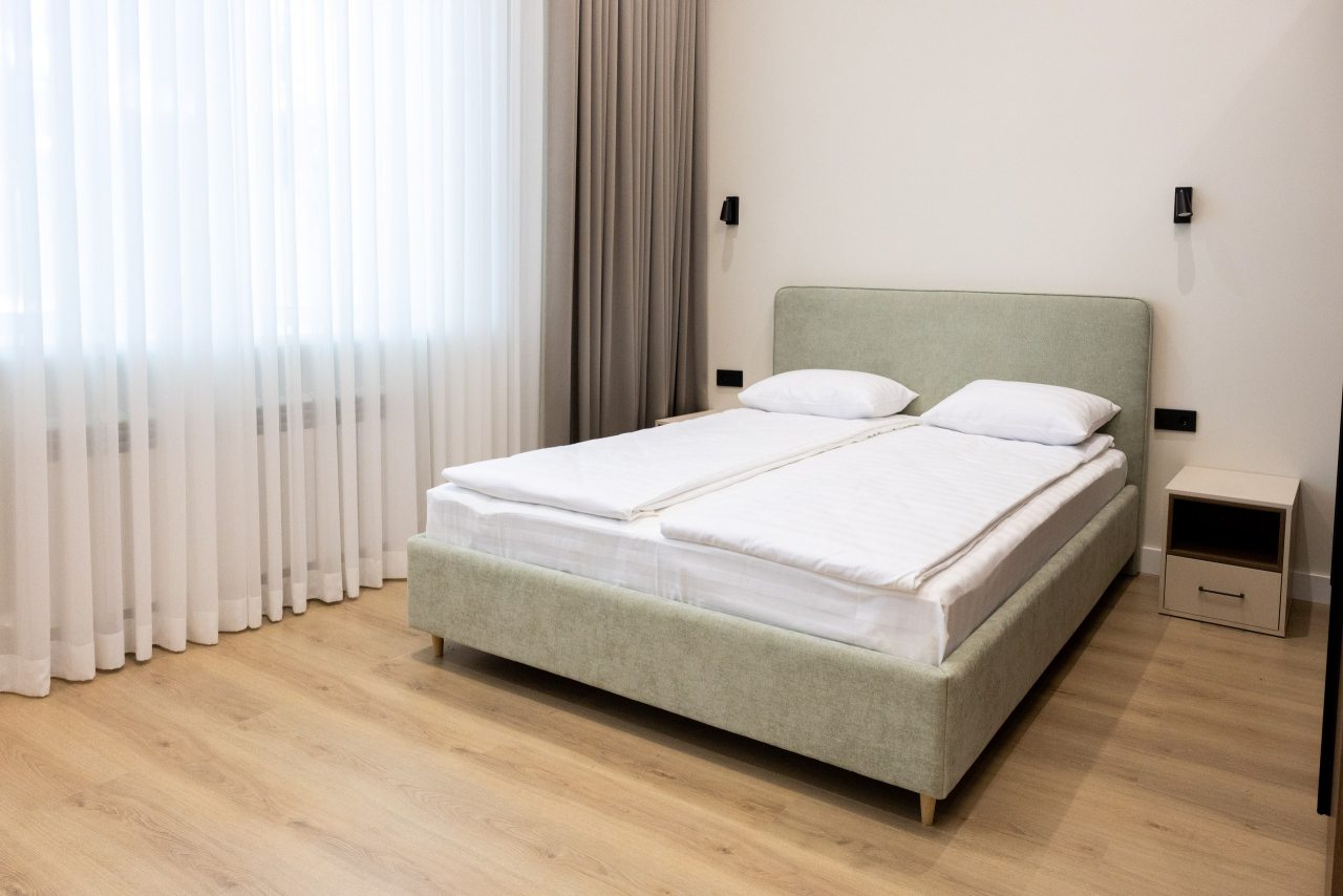 Для выбора гостям доступны различные категории номеров: от «стандарта» до «де люкса». В каждом из них отдыхающие обнаружат качественную и функциональную мебель, включая мягкие кровати, телевизор, бесплатный интернет. В индивидуальном санузле продумано всё: от фена до гигиенических принадлежностей.