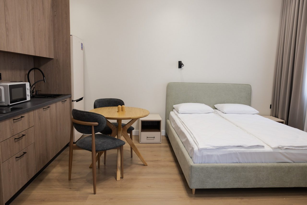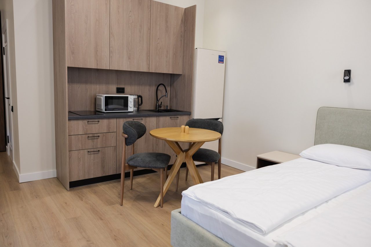 В номерах предусмотрена мини-кухня, где есть бытовая техника для приготовления перекуса или горячего чая и кофе. В пешей доступности — рестораны и кафе с национальной кухней.