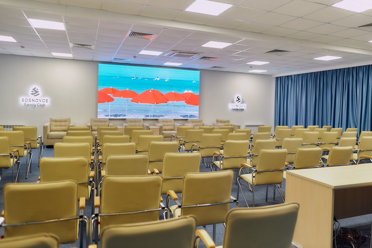 Парк-отель «Sosnovoe Family Club» предоставляет в аренду конференц-залы для проведения деловых мероприятий и деловых встреч. Помещение, расположенное на свежем воздухе в сосновом лесу, произведет неизгладимое впечатление на ваших бизнес-партнеров.