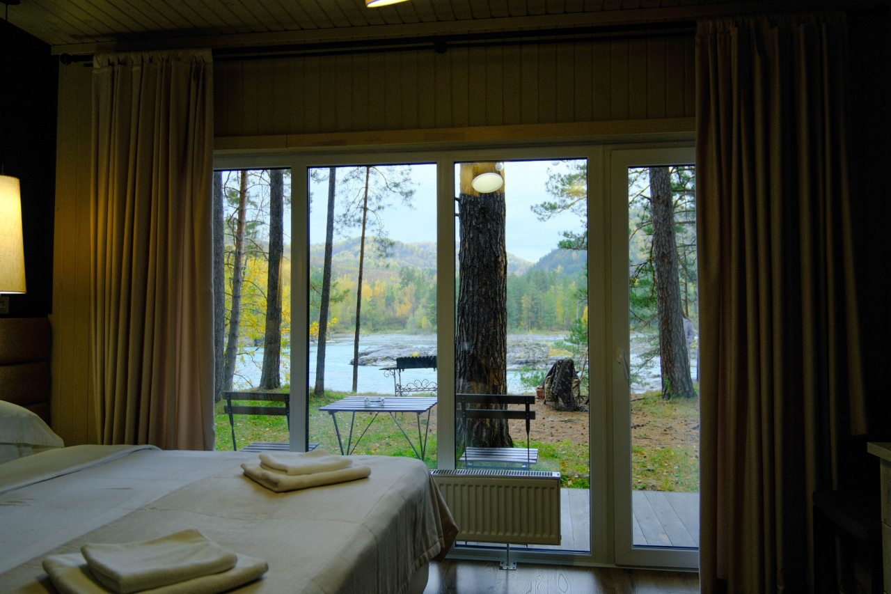Отлично всё!!! Даже немножко неожиданно... Брали его как резерв, на более близкое расположение к аэропорту, до этого жили ближе к Чемалу.... Шум Катуни, вид Катуни, возможность побаловаться спинингом - отель, как говорится, на первой линии. 150 руб. Такси до Красного и Белого (в случае необходимости) .... Приветливый и доброжелательный персонал. Баня заслуживает высокой оценки, подогреваемый бассейн, небольшой, но вполне эргономичный.... Ресторан - отдельная песня: разнообразно и вкусно, уютно и красиво!!!! В остальном разберётесь сами...