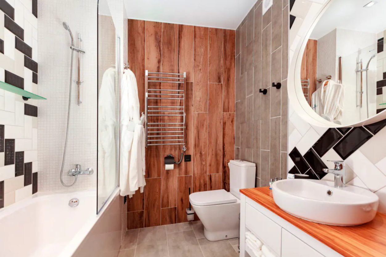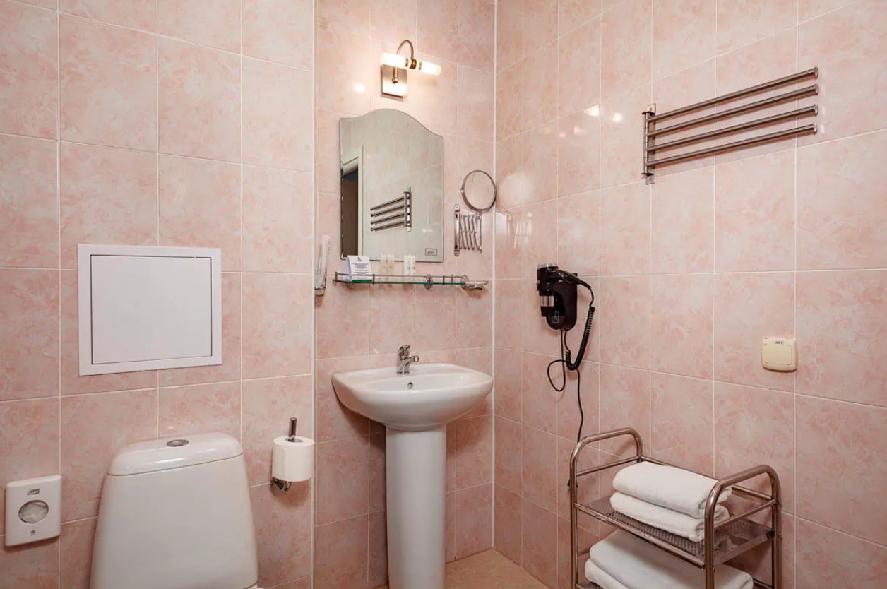 Для качественного отдыха имеется двуспальная кровать, телевизор, кондиционер, различные источники освещения, шкафы, Wi-Fi. Санузел порадует вас наличием свежих полотенец и туалетно-гигиенических средств.