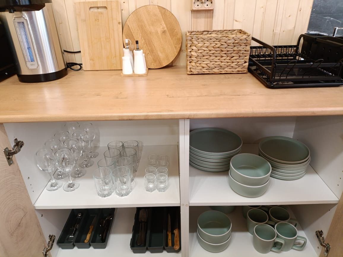 На кухонной зоне можно воспользоваться холодильником, микроволновой печью, плитой, посудой и набором кухонных принадлежностей. Также есть услуга доставки продуктов к номеру.