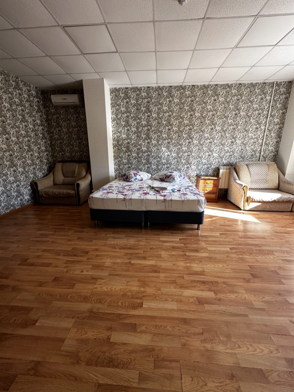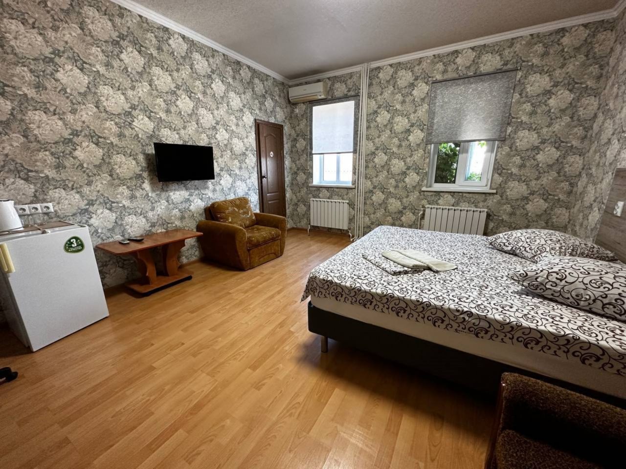 Чистый и уютный номер, кондиционер, телевизор, электрочайник. Чистое белье, отсутствие посторонних запахов.