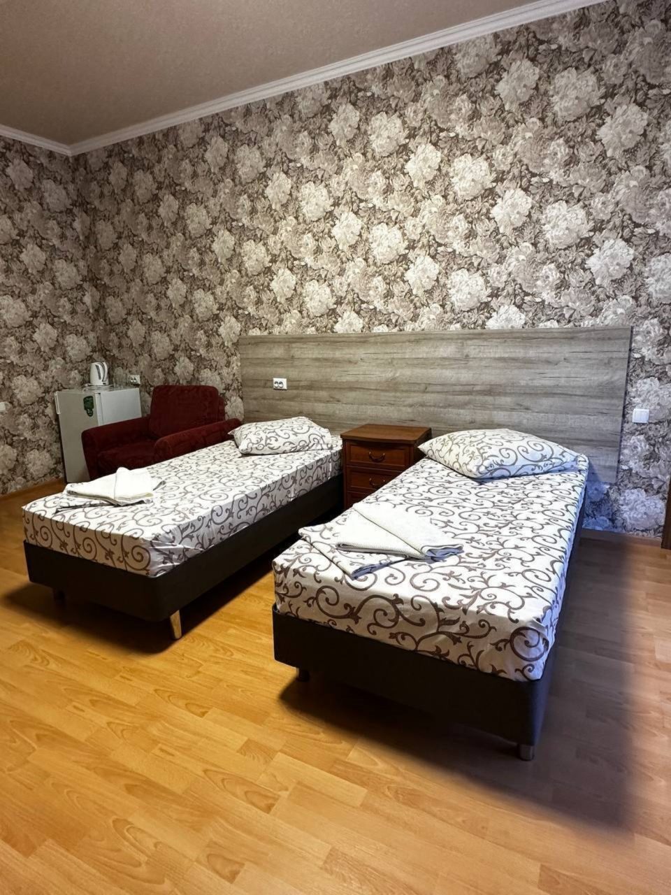 Казалось бы, обычные номера, но чистые и уютные. Мебель подобрана со вкусом, порадовало отношение к постояльцам. Ванная комната своя, питание очень вкусное. Если будете здесь проездом, то смело выбирайте этот гостевой дом, не пожалеете. Отдельно хотелось отметить расположение здания, рядышком вокзал. Особенно удобно для путешествующих на машине.