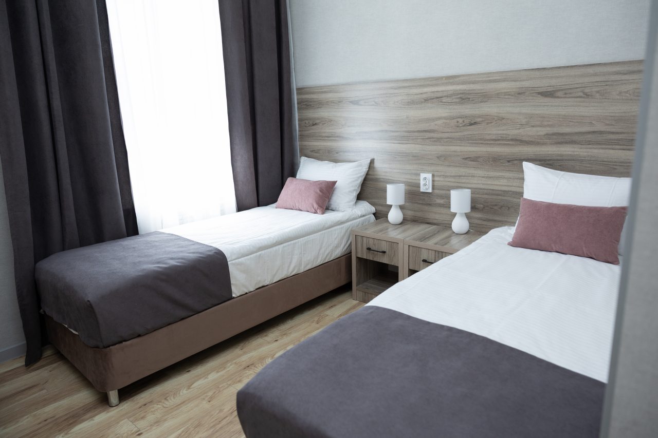 - Номера категории «Люкс (комфорт)» - вмещают до 4-х гостей. Цена при бронировании за 2-х гостей, стоимость за размещение 3-го и 4-го гостя 500 руб. за каждого.