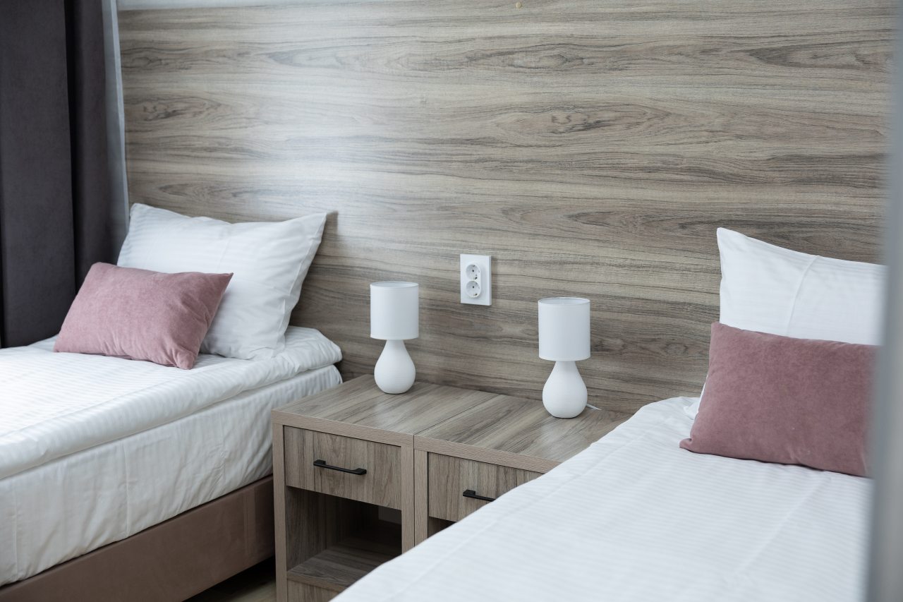 - Номера категории «Трехместный и более (стандарт плюс)» - вмещают 3-х гостей. Цена при бронировании за 2-х гостей, стоимость размещения 3-го гостя 500 руб.