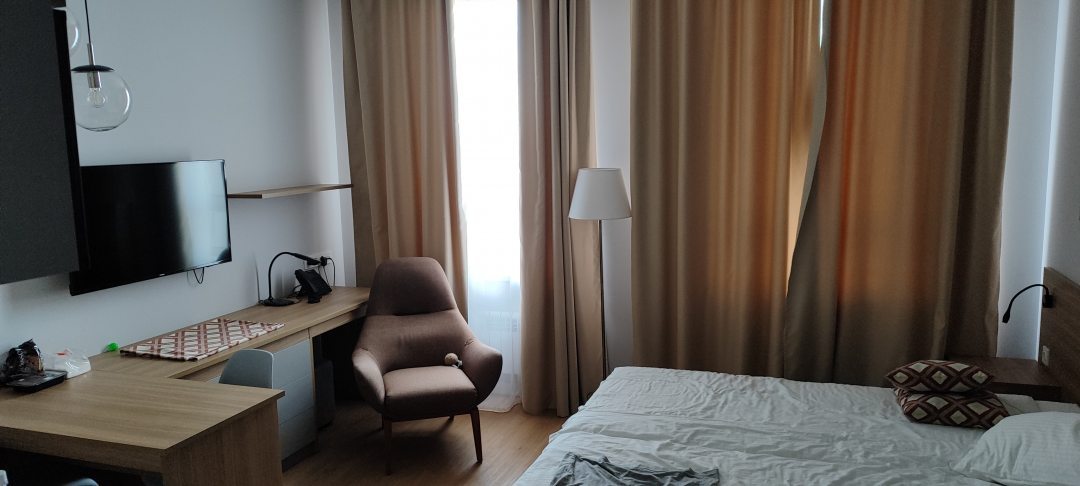 Нам очень понрпвился отель!!! Всё комфортно, чисто, современно!!! Учли наши пожелания - 18 этаж с видом на стадион!!!