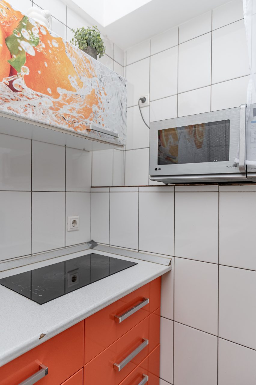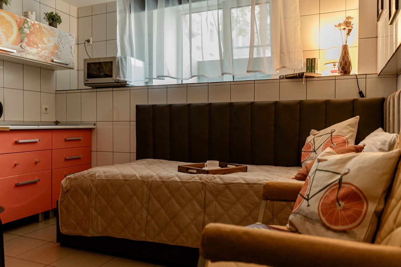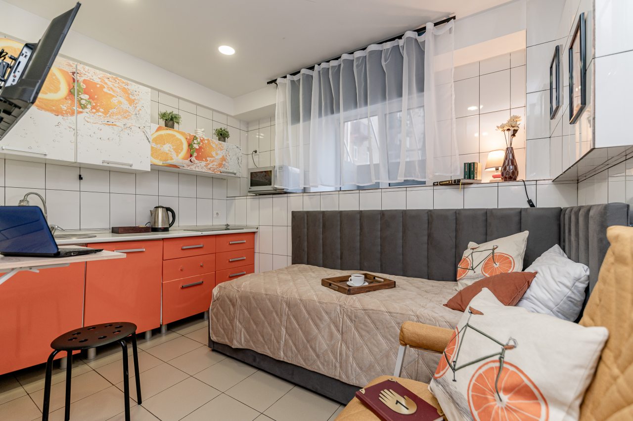 Понравилось, что рядом транспорт - трамваи, электробусы, станиция метро в трех остановках. Много магазинов. Понравилось, что в комнате чисто. Все есть для комфортного проживания. (плита, микроволновка, посуда, уютная ванная комната). В коридорах уютно.