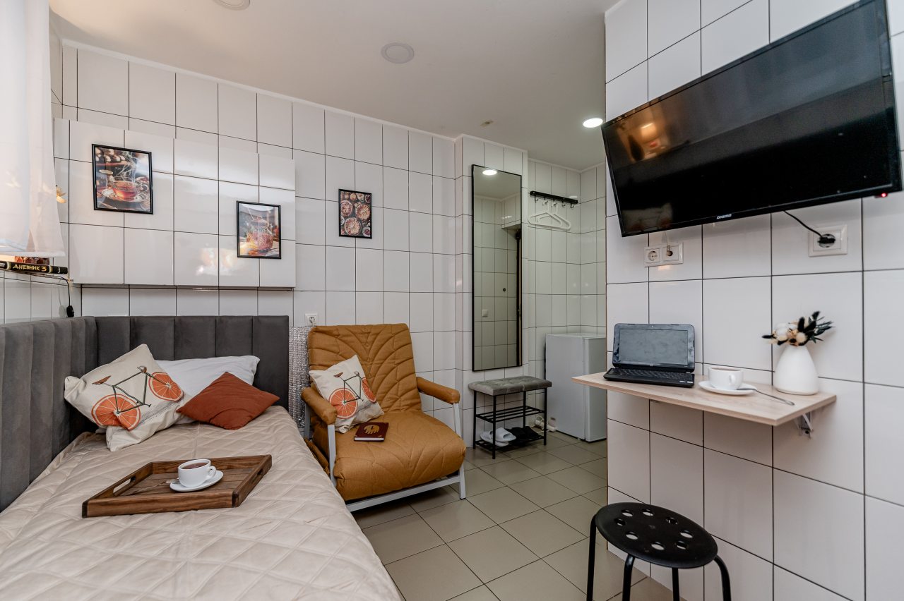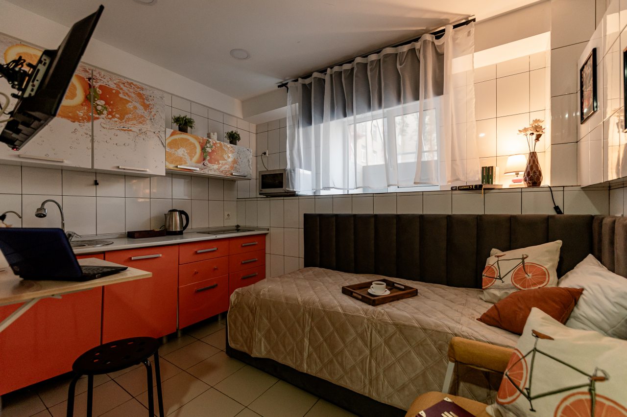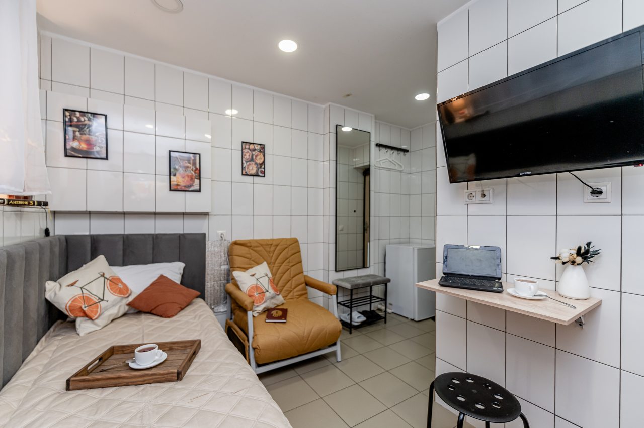 Номер отличный, чисто, уютно, стиральная машина на этаже. Есть все для того, чтобы приготовить еду, но рядом много кафе. Цена Очень рриемлемая
