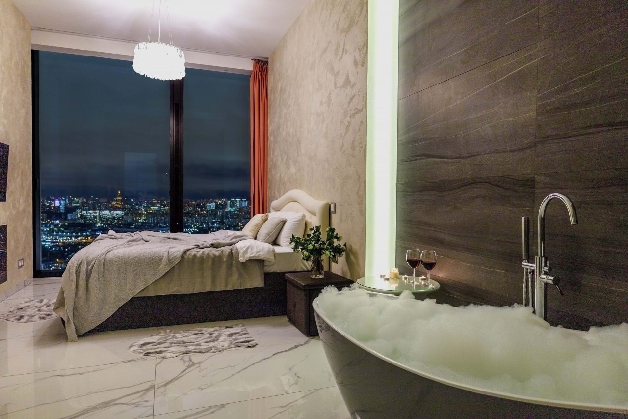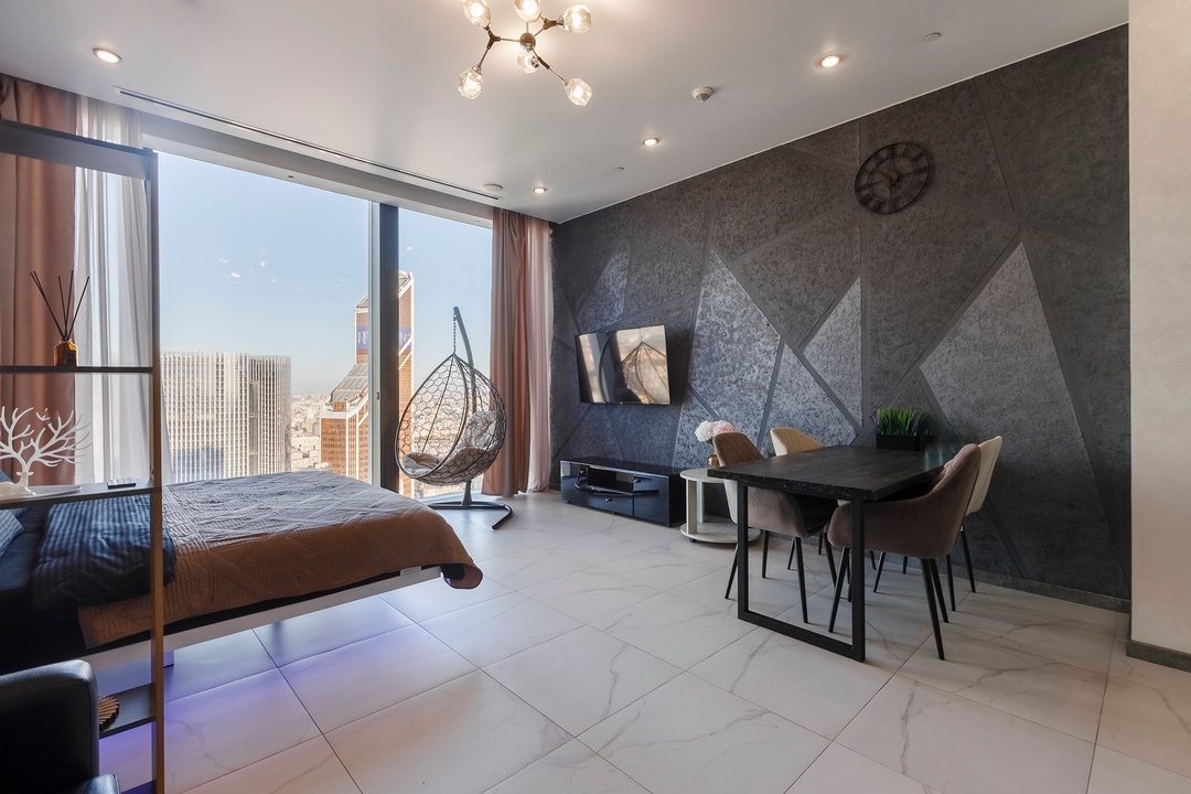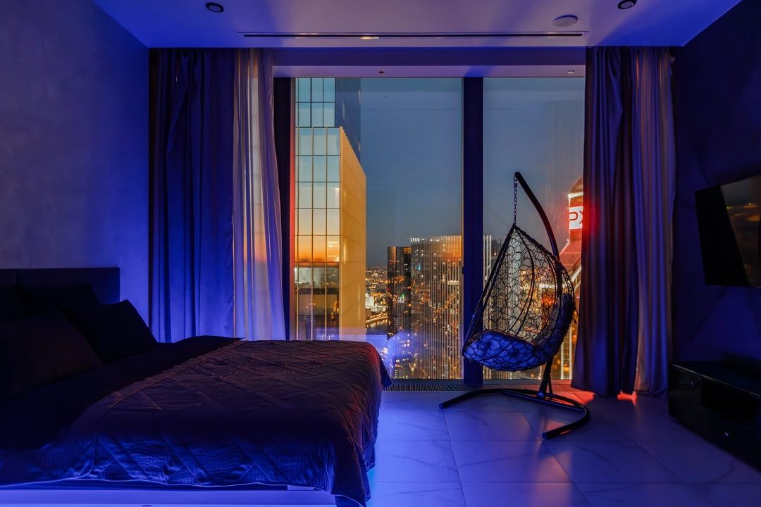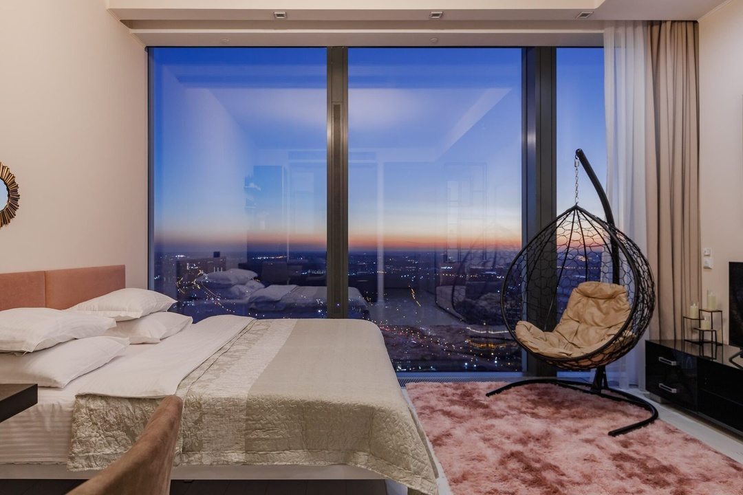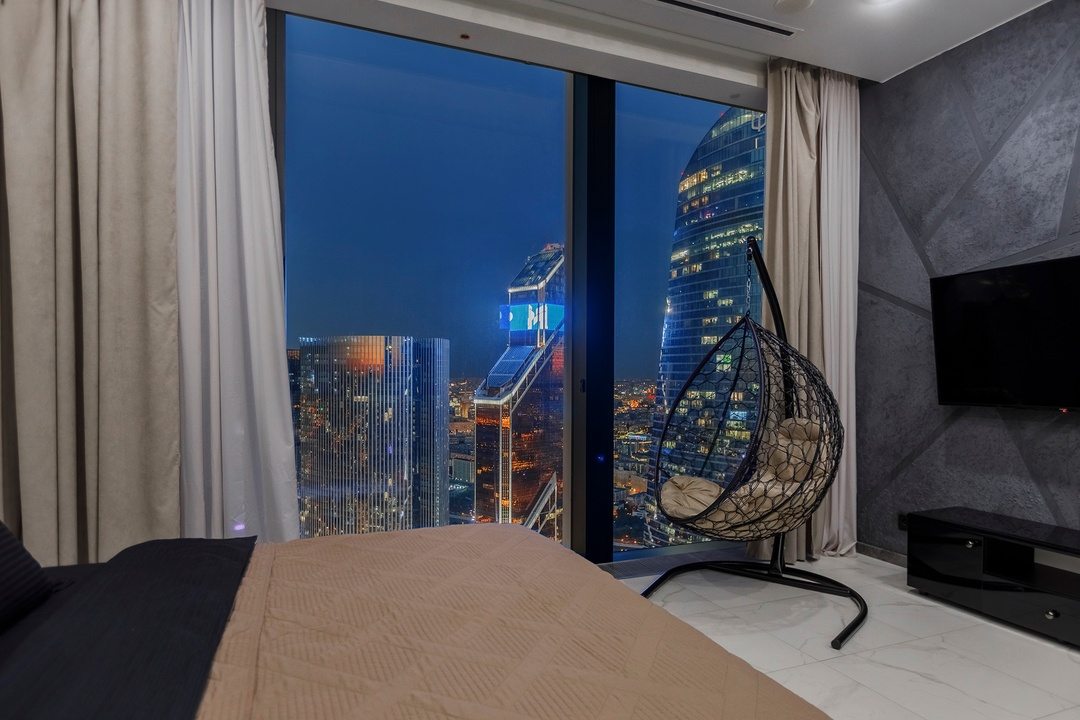 Для меня, эти апартаменты на 40-ом этаже, лучше, чем супер-люксы в дорогущих гостиницах Москвы. Заселение быстрое. Про расположение и говорить нечего - любой транспорт, вся инфраструктура под ногами. Созданные условия проживания просто превосходны. Внимательное отношение к мелочам, многоуровневое и разноплановое освещение, продумано расположение выключателей (удобно, что с кровати вставать не надо). Сервис на уровне отеля 5 звезд - тапочки, халаты, чай, кофе, профессиональные сотрудники, мягкие полотенца и белоснежное постельное белье с приятным запахом. Вид из окна просто невероятный и днем, и ночью! Пьешь кофе, глядишь в окошко и уже настроение +100500!