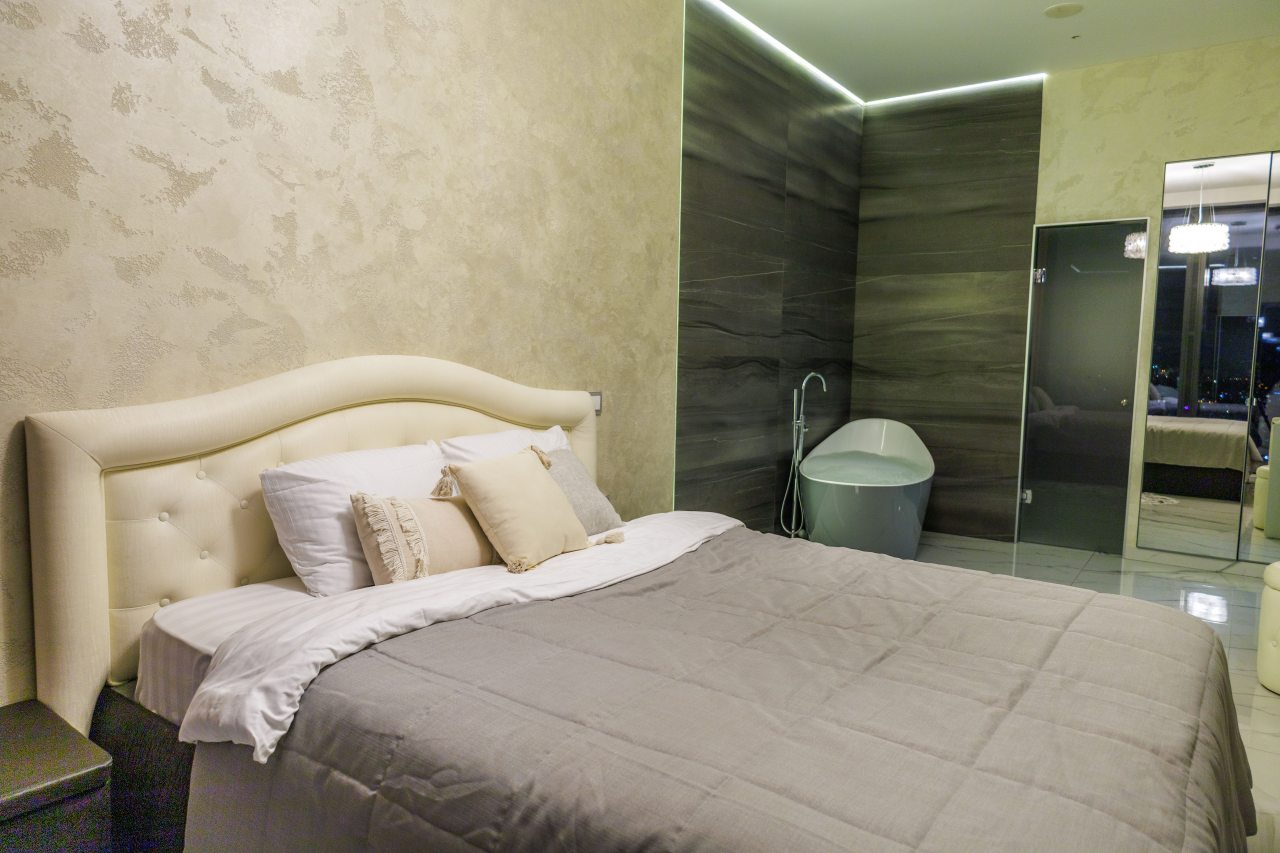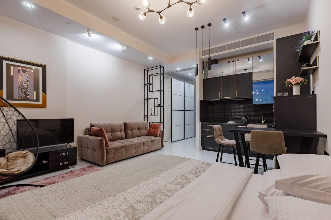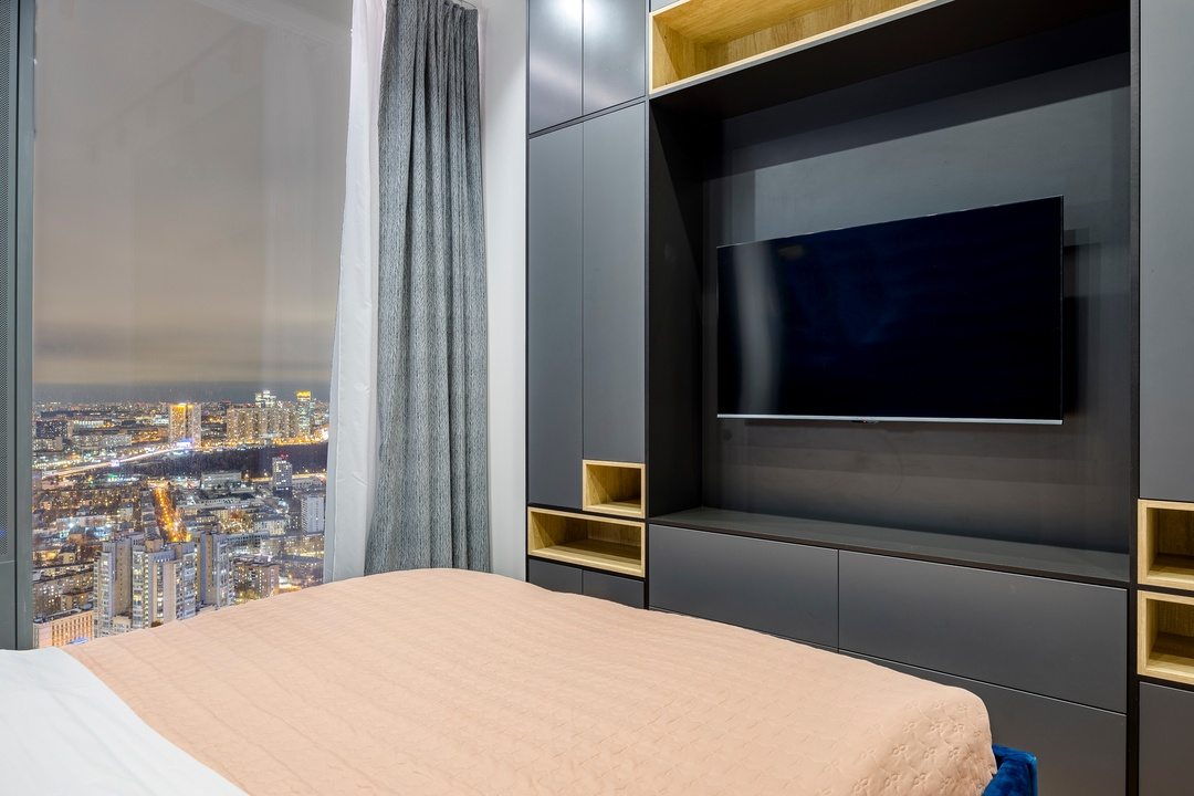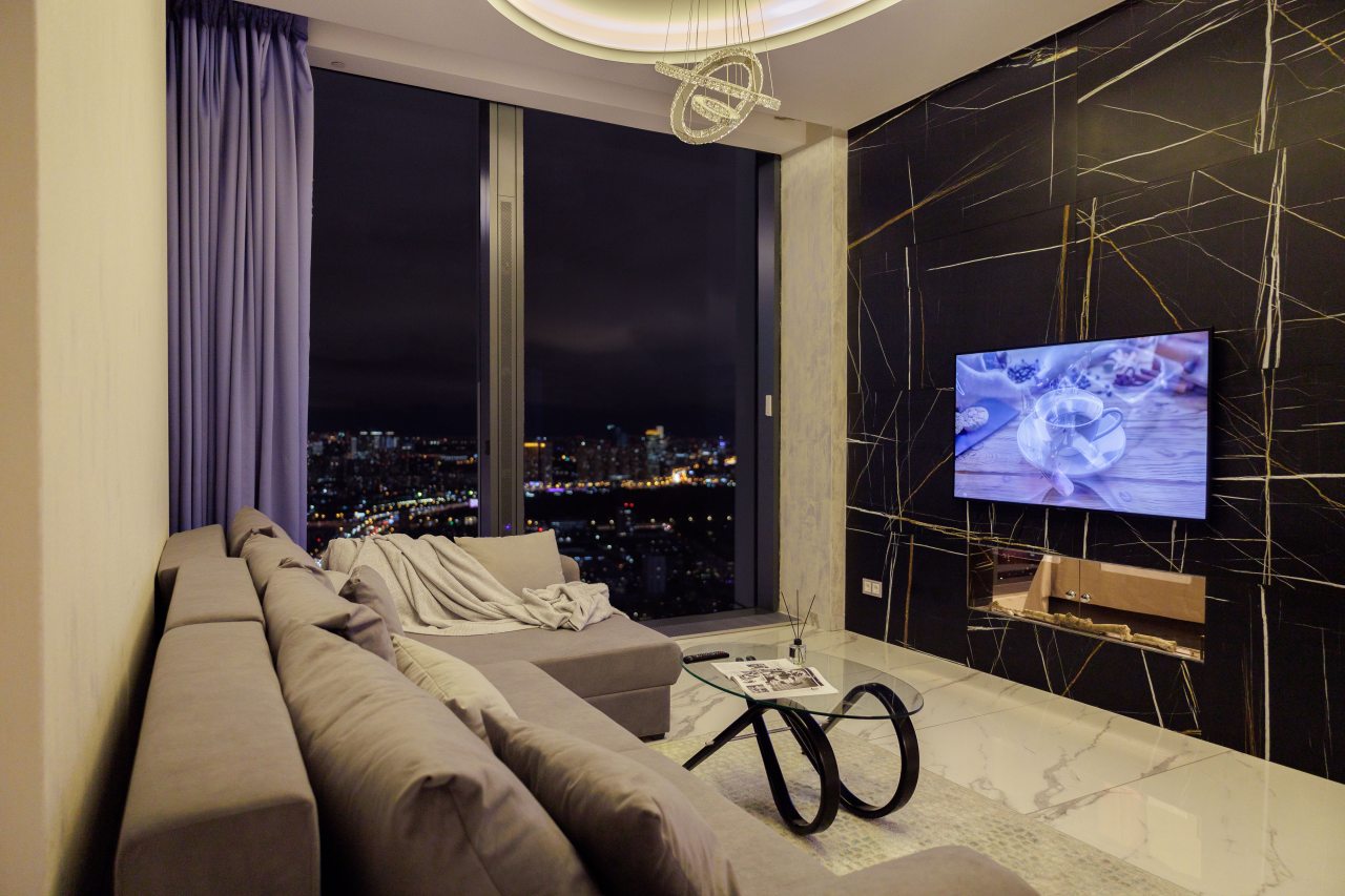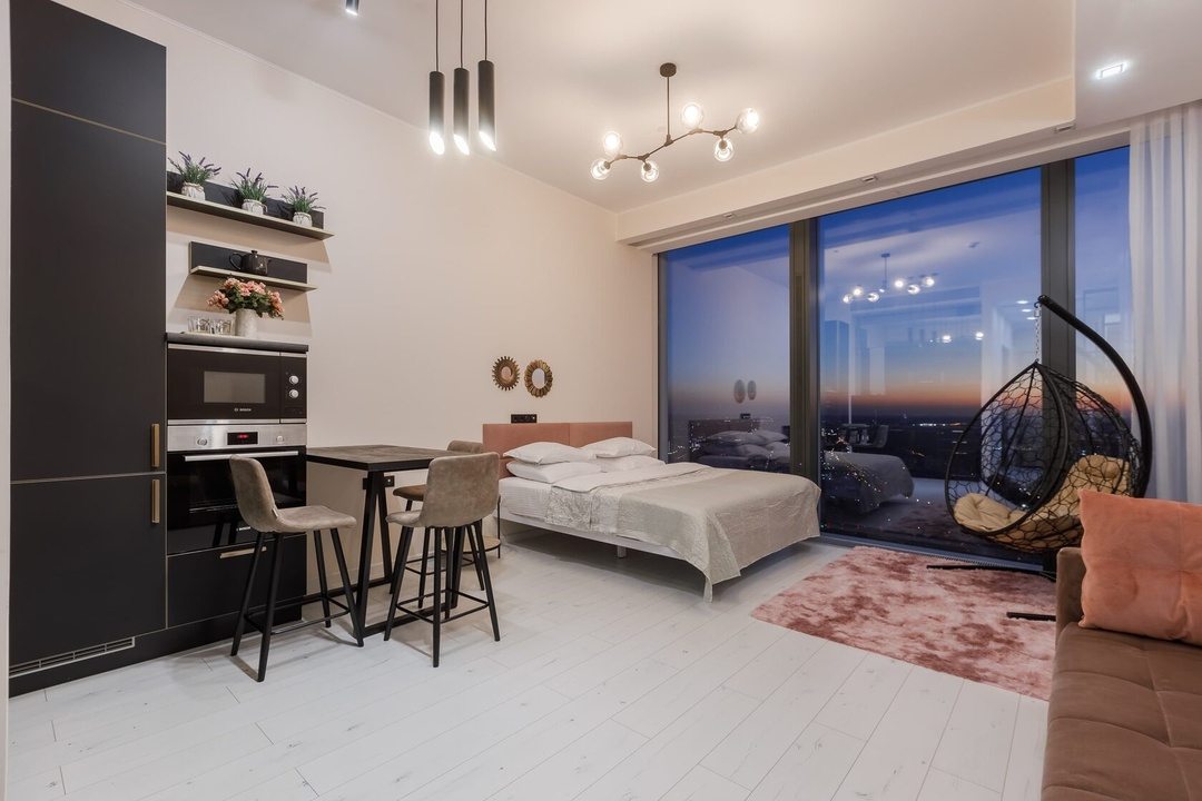 Для меня, эти апартаменты на 40-ом этаже, лучше, чем супер-люксы в дорогущих гостиницах Москвы. Заселение быстрое. Про расположение и говорить нечего - любой транспорт, вся инфраструктура под ногами. Созданные условия проживания просто превосходны. Внимательное отношение к мелочам, многоуровневое и разноплановое освещение, продумано расположение выключателей (удобно, что с кровати вставать не надо). Сервис на уровне отеля 5 звезд - тапочки, халаты, чай, кофе, профессиональные сотрудники, мягкие полотенца и белоснежное постельное белье с приятным запахом. Вид из окна просто невероятный и днем, и ночью! Пьешь кофе, глядишь в окошко и уже настроение +100500!