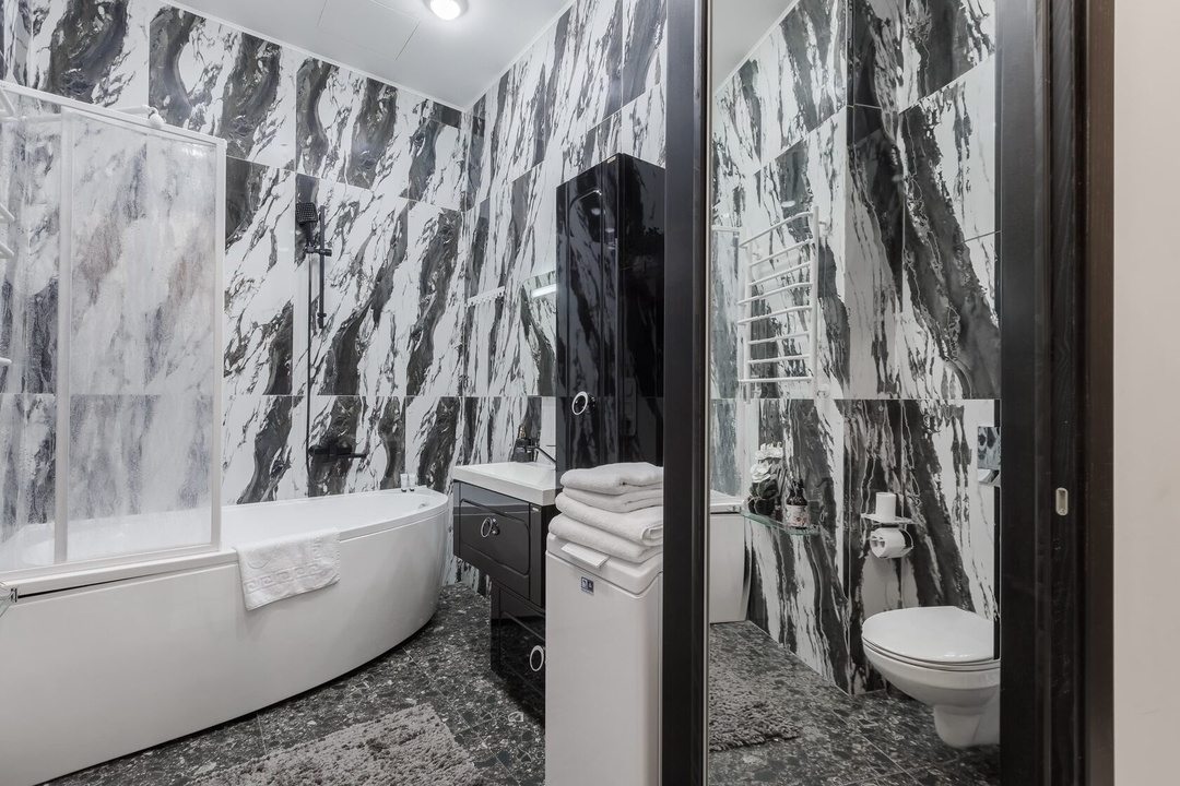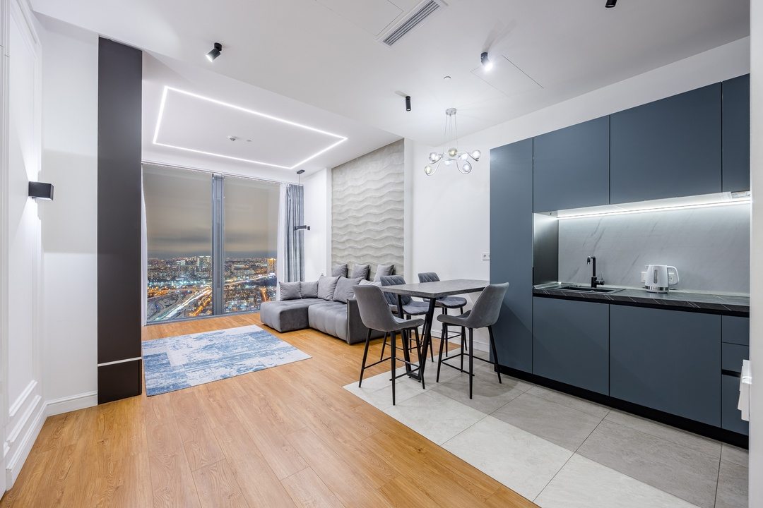 Апартаменты с чудесным видом на Москву. Внутри очень просторно, продуманный приятный дизайн и качественный ремонт. Персонал вежливый и профессиональный. В ванной средства для душа, зубной набор, чистые полотенца. Мы хорошо отдохнули!