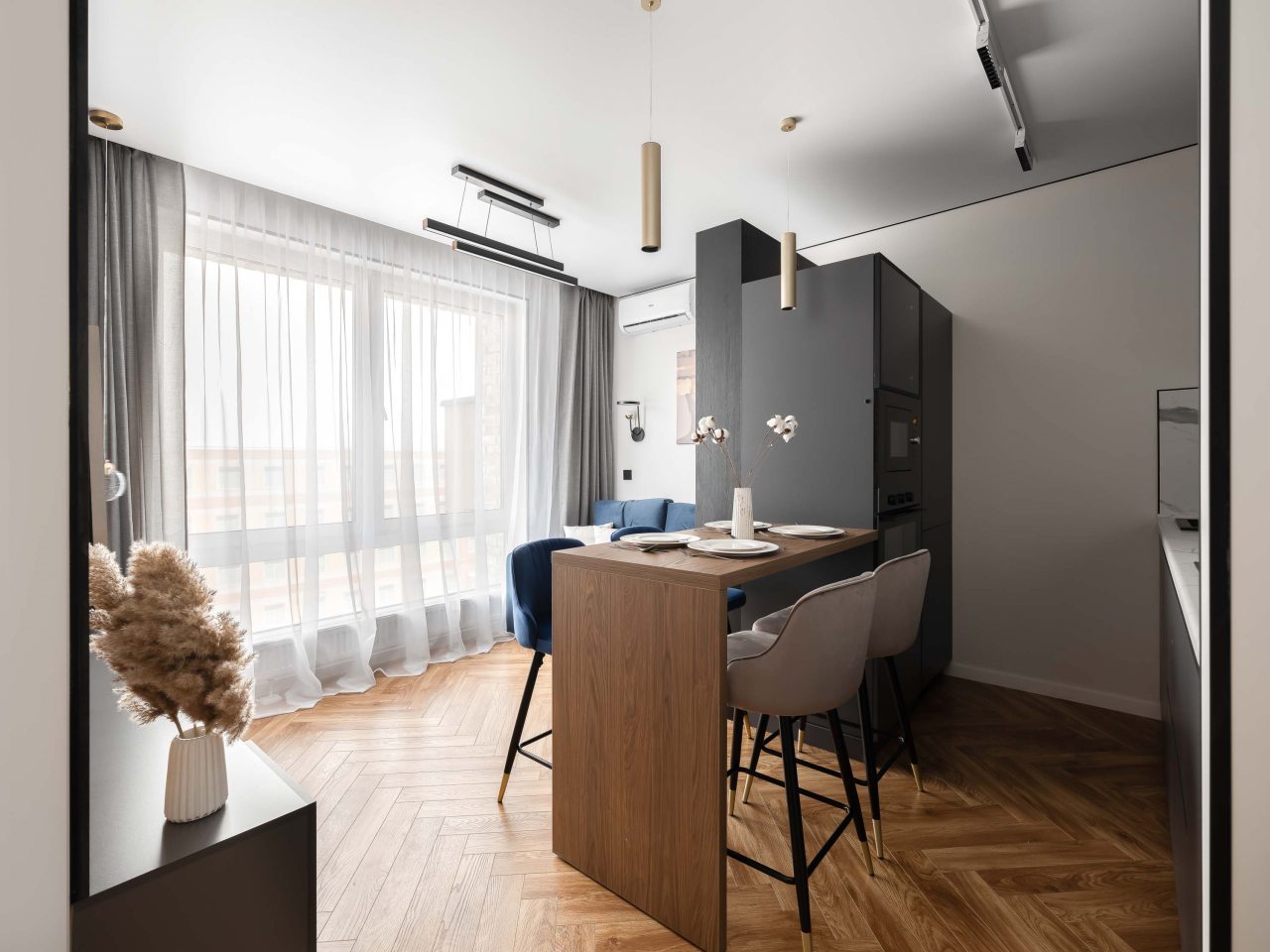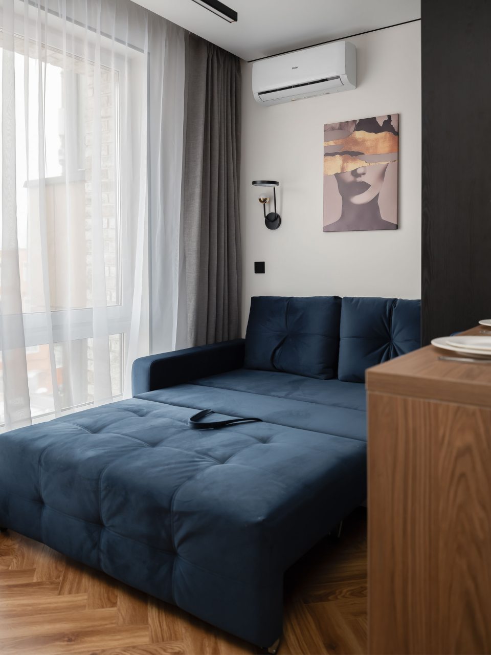 Очень удобные апартаменты, всё оформлено в современном стиле, светло и уютно. Местоположение позволяет быстро добираться до важных объектов. Хорошо, что в номере было спокойно и можно было полноценно работать. Подходит для тех, кто приезжает по делам и ищет комфортное жильё.