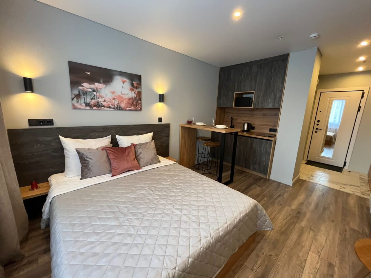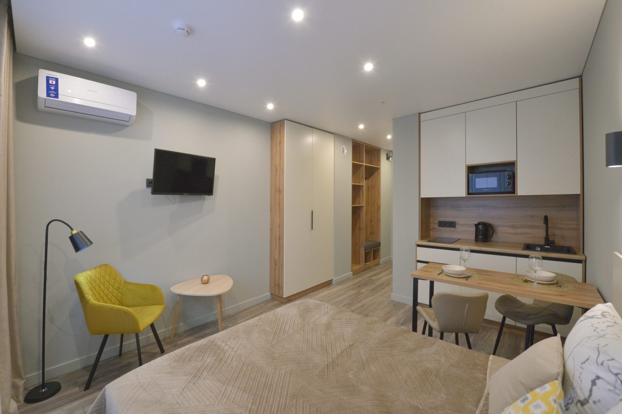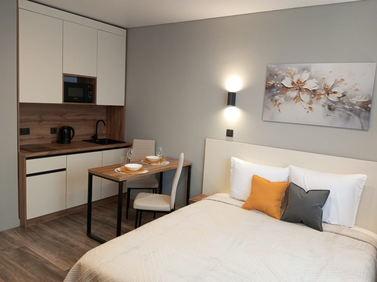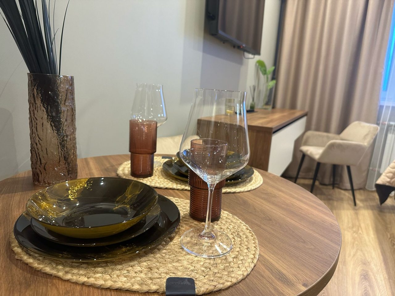 Классные апартаменты с современным и стильным ремонтом! Предоставляемая мебель и техника в хорошем состоянии. Порадовало наличие небольшой кухонной зоны. Рядом есть магазины, кафе. Приездом и проживанием осталась довольна!