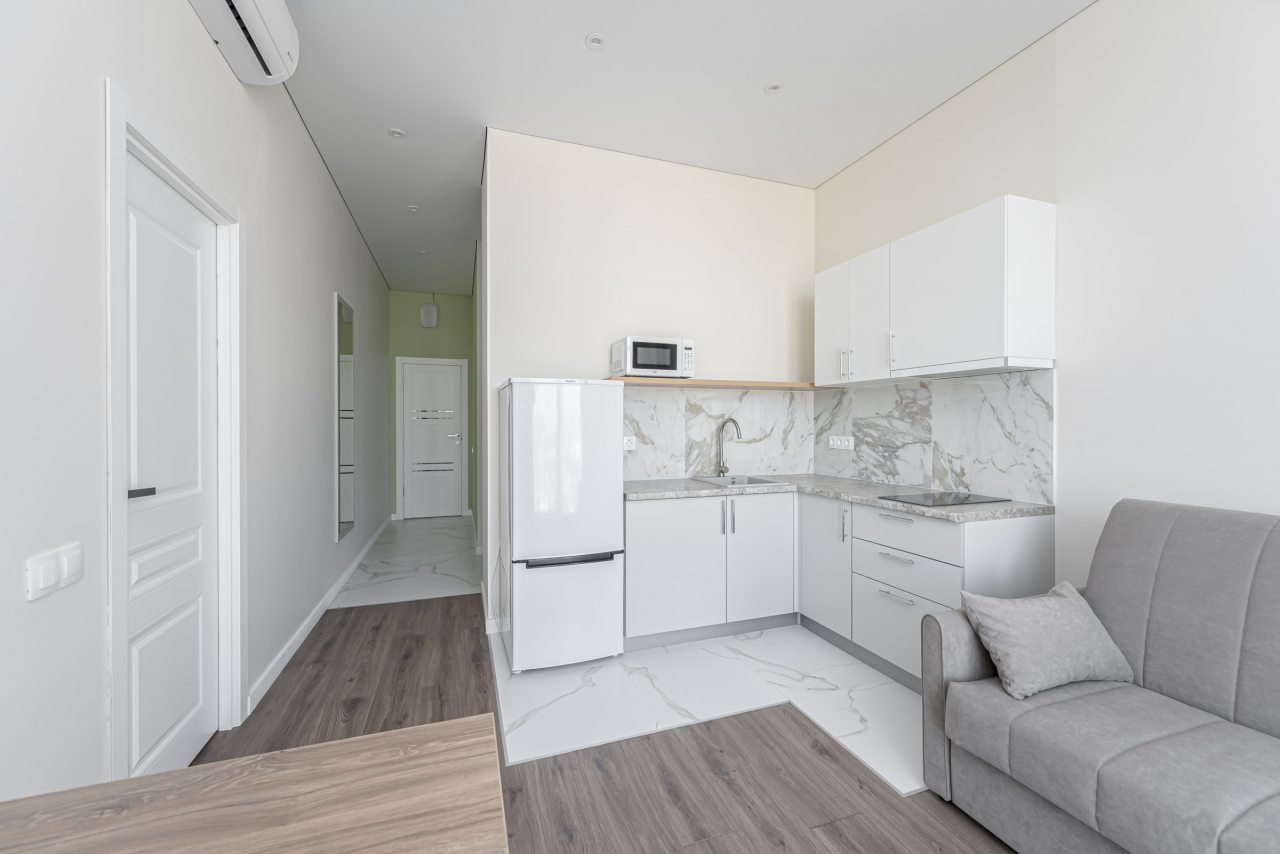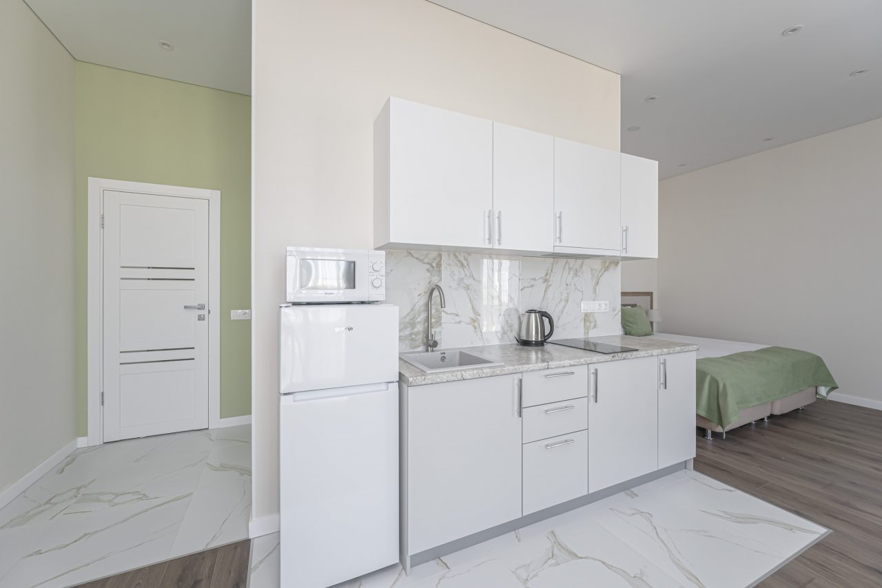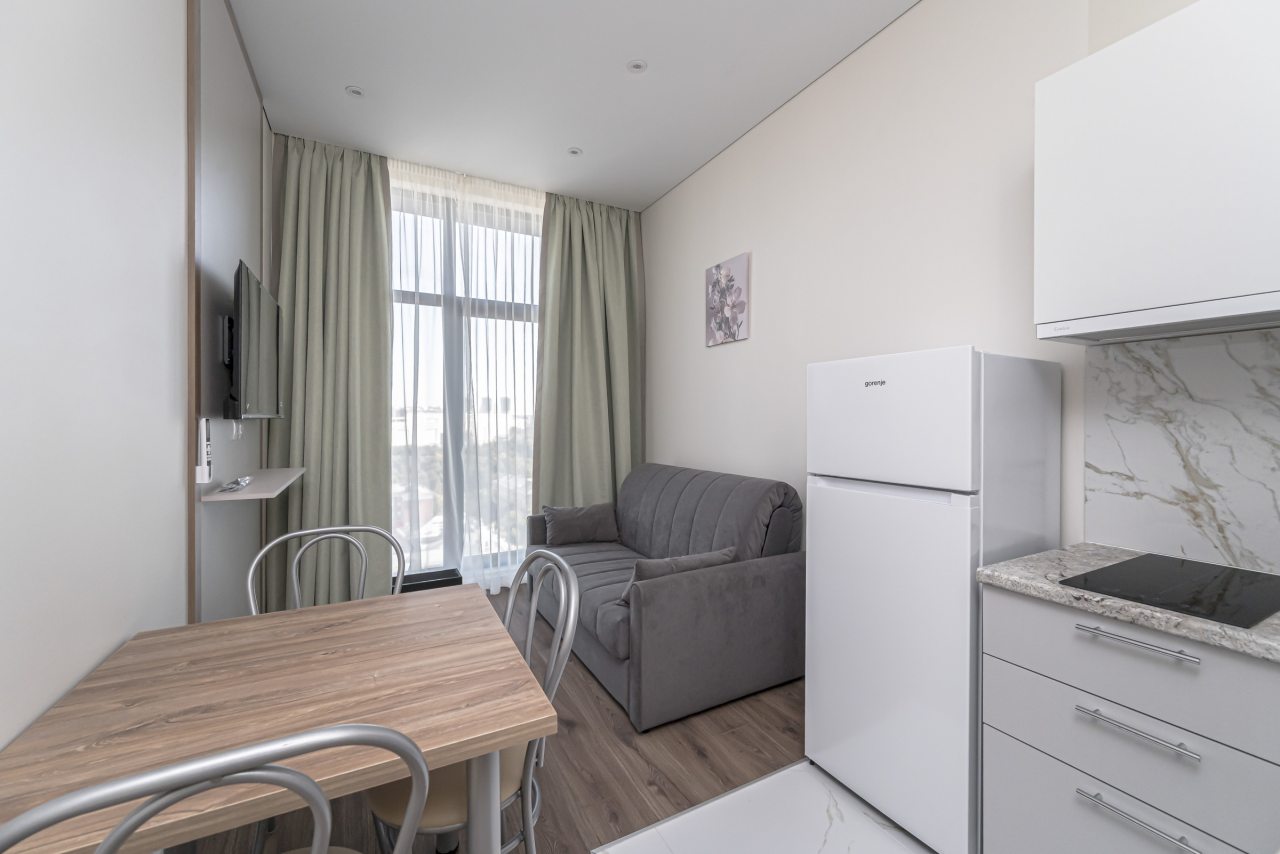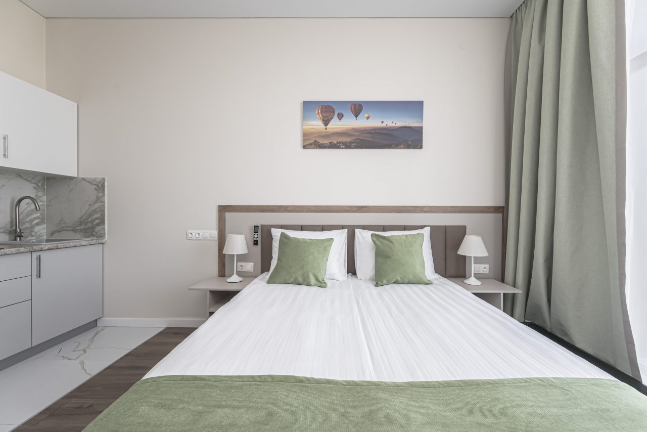 Кухонная зона оснащена варочной панелью, чайником, микроволновой печью и обеденной зоной, чтобы вы могли порадовать себя приготовлением любимой еды в любое время. В некоторых номерах также имеется духовой шкаф.