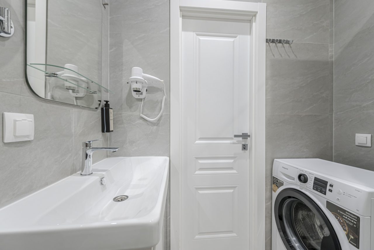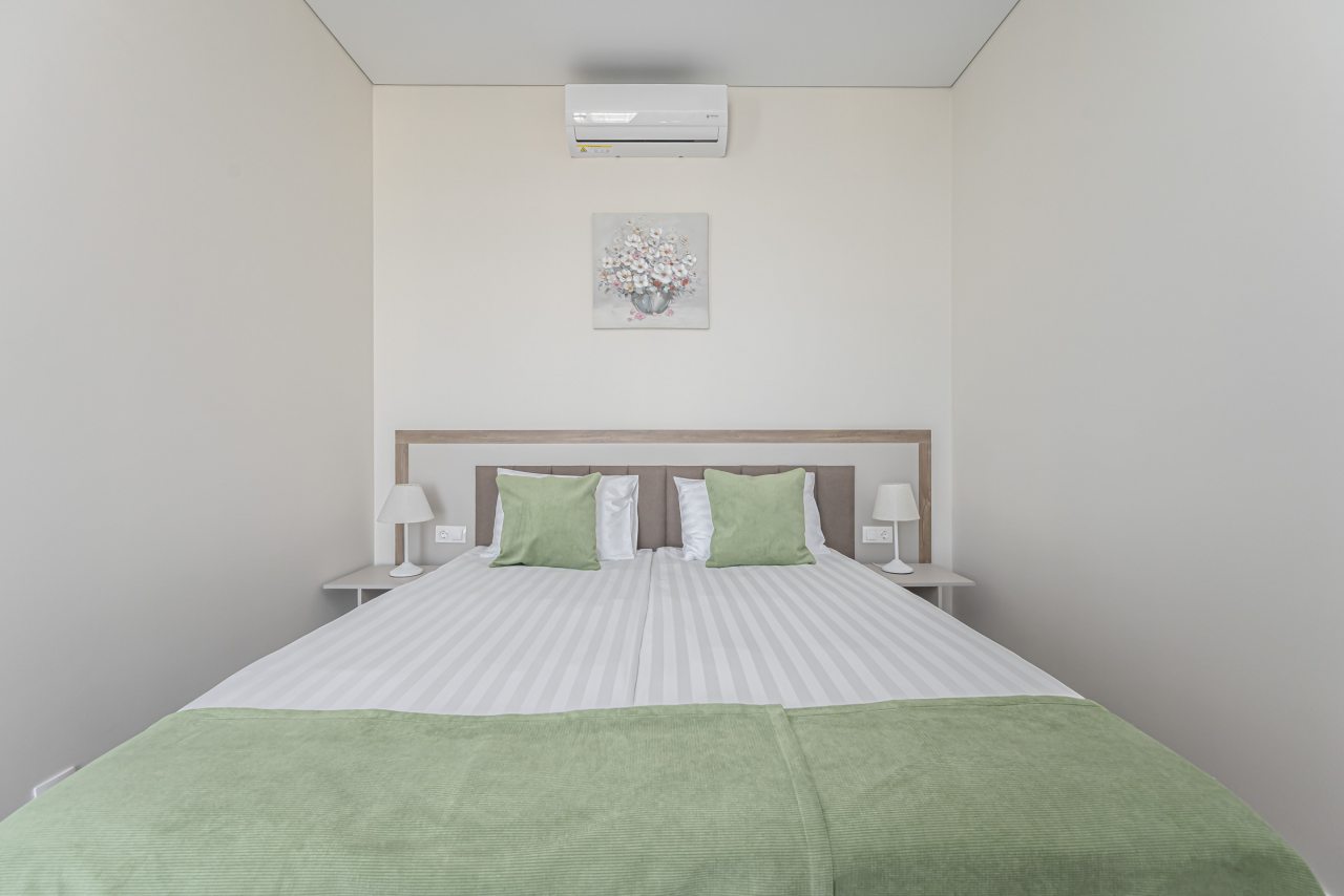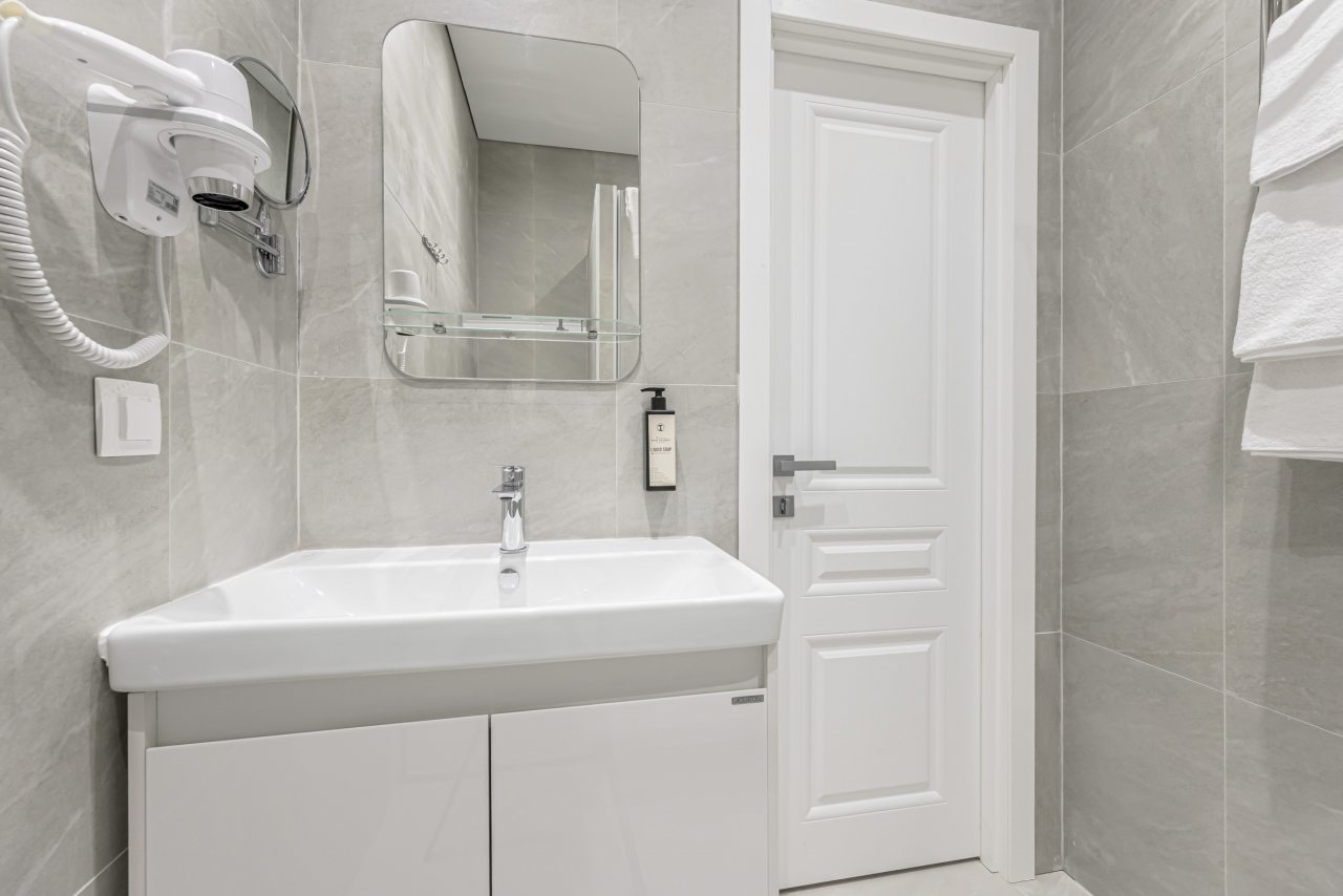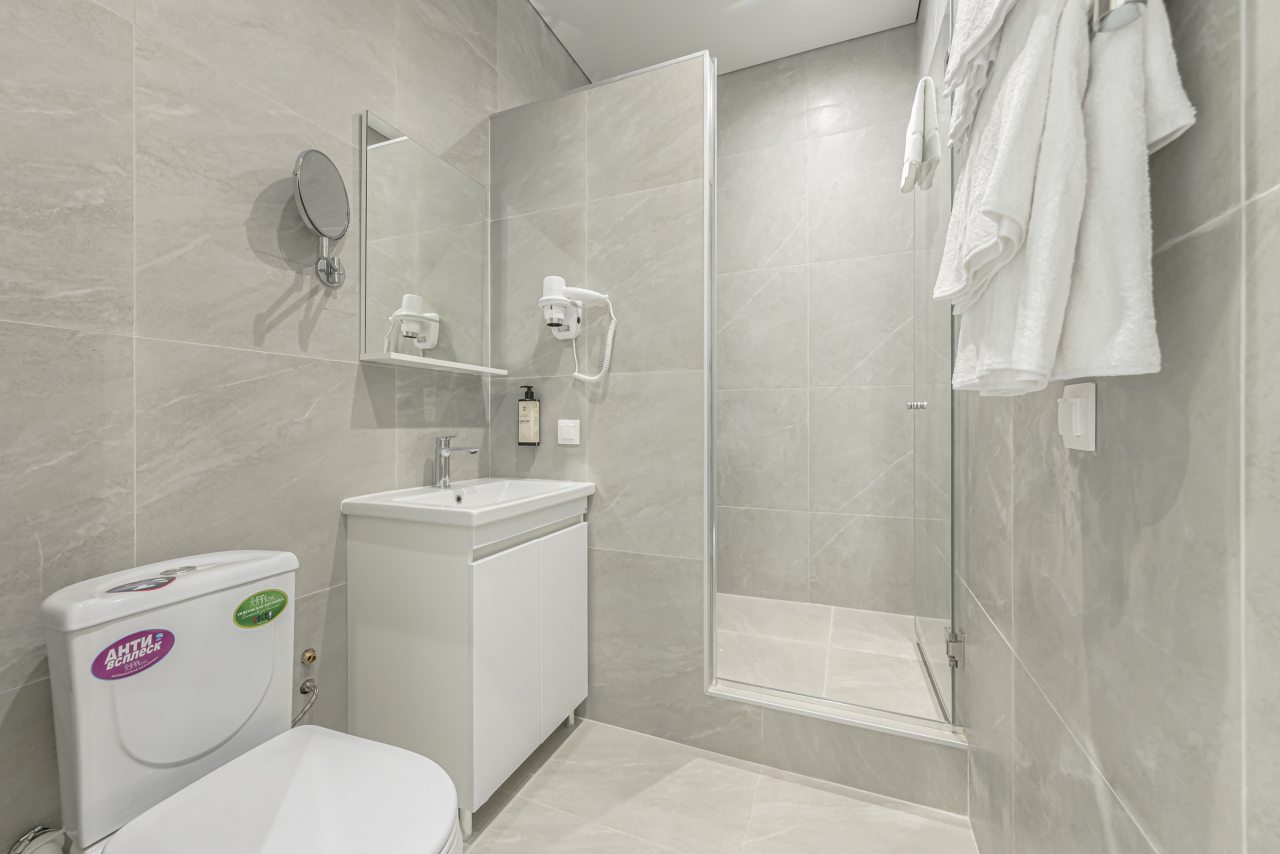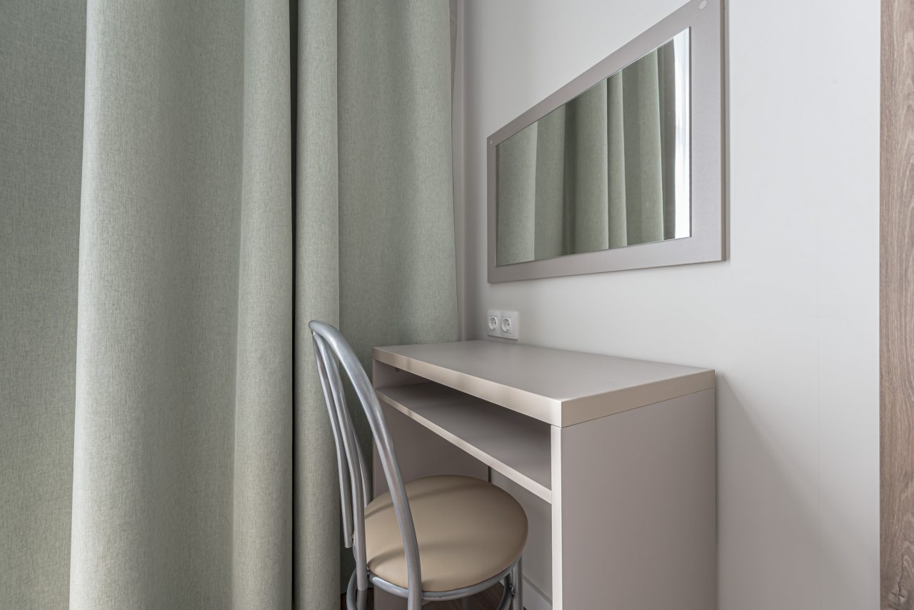 К выбору предлагаются различные по площади и вместимости номера, которые укомплектованы всем необходимым для отдыха и проживания, включая кровать с удобным матрасом, прикроватные светильники и розетки для дополнительного удобства, кондиционер, шкаф, телевизор, а также собственный санузел с набором полотенец, гигиенических средств и стиральной машиной.