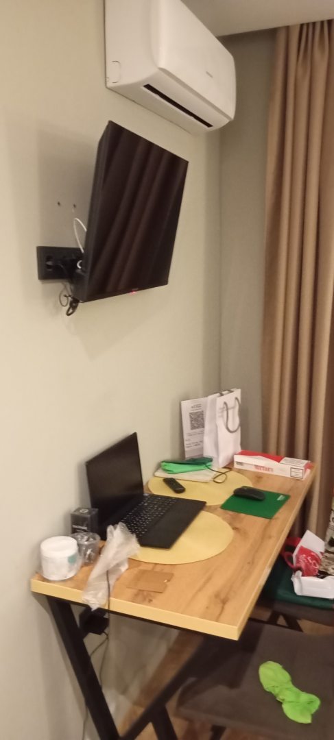 Хороший светлый номер со всеми удобствами. Техника в рабочем состоянии, сан узел чистый, красивый, полотенца мягкие , чистые вид из окна красивый. Вода идет круглосуточно, отопление работает. Все хорошо, спасибо